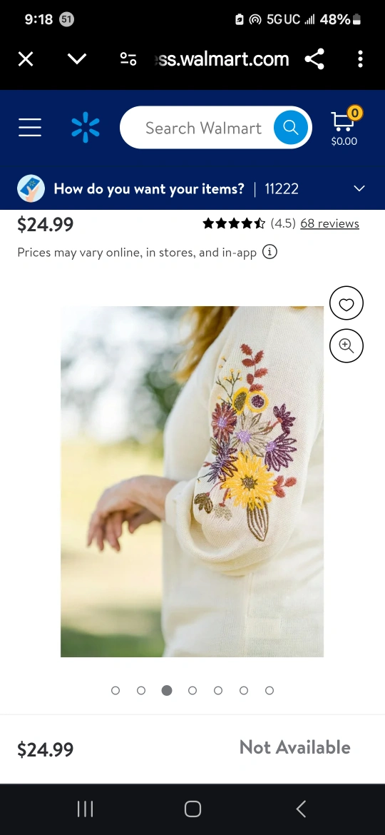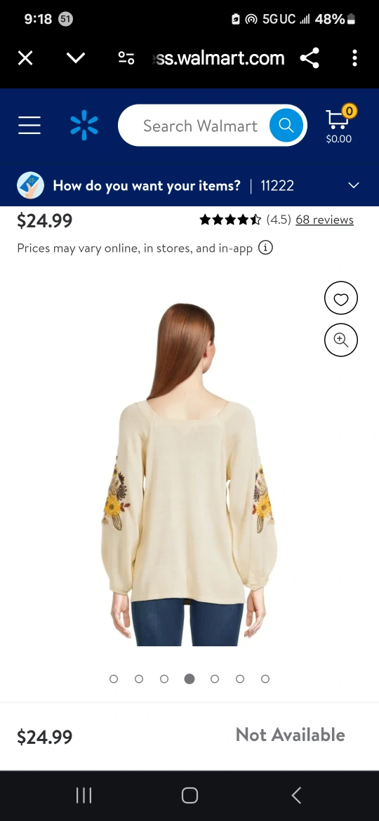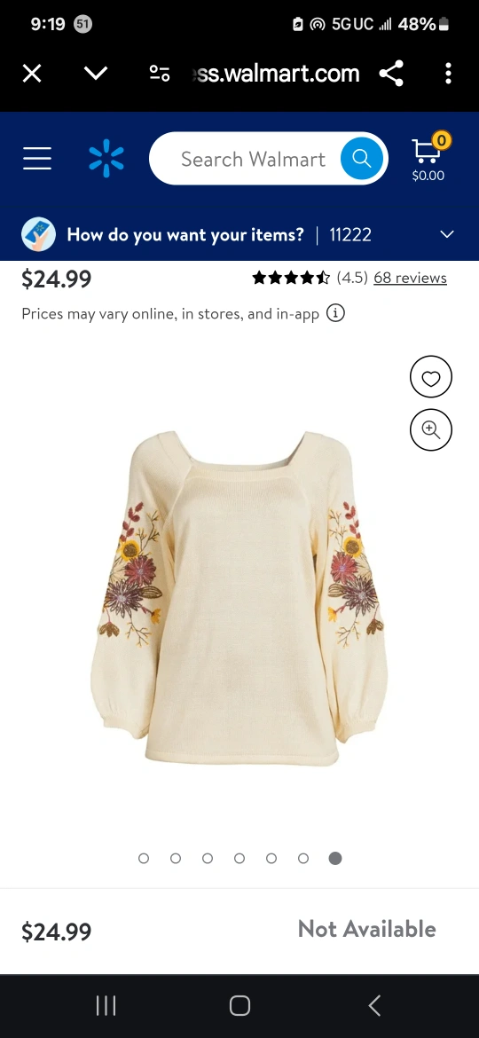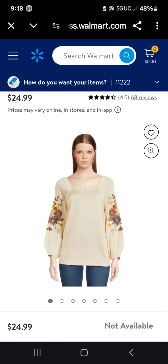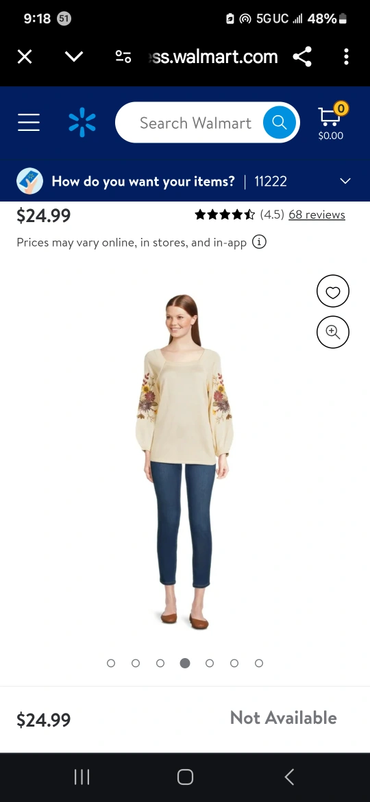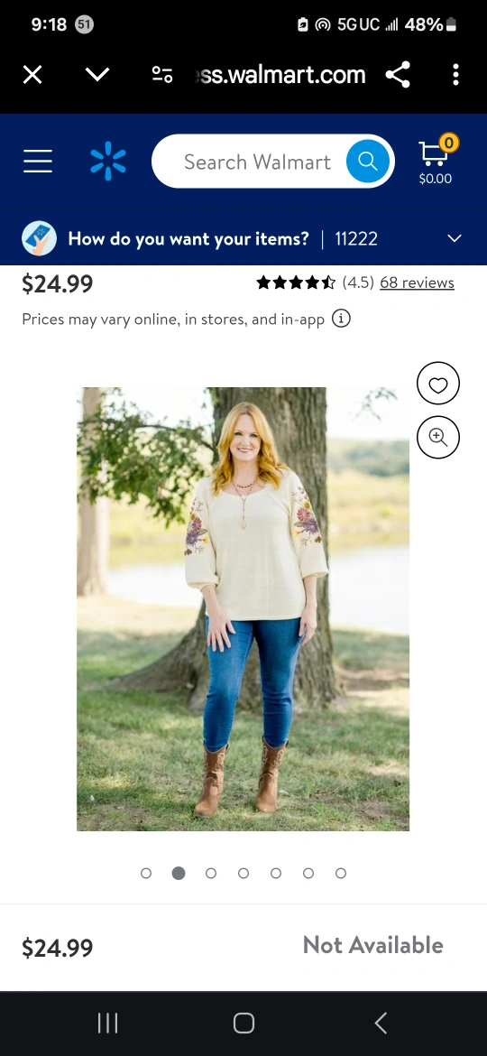 I'm selling a cream-colored peasant top from The Pioneer Woman. It features beautiful floral embroidery on the sleeves. Originally bought for $24.99!