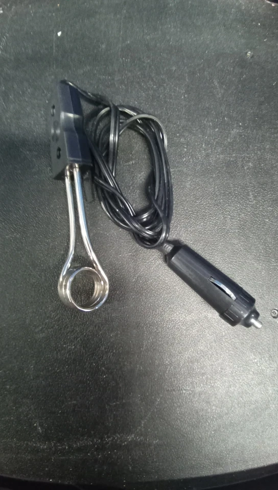 This is a car immersion heater, perfect for heating water on the go! It's a portable water heater that plugs into your car's cigarette lighter socket. Great for travel or camping