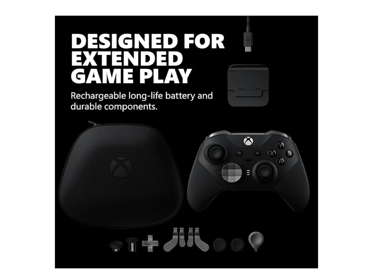 Selling an Xbox Elite Wireless Controller Series 2 in black! It's designed for extended gameplay with a rechargeable long-life battery and durable components. Enjoy exceptional performance, customization, and durability in your hands