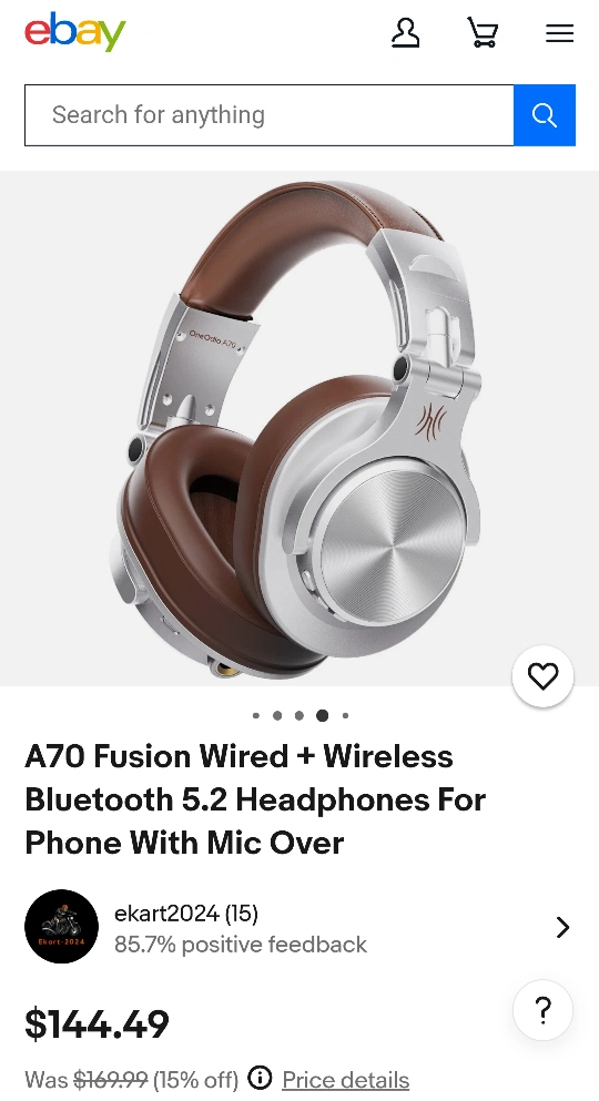 Selling a set of OneOdio A70 Fusion headphones in silver and brown. These are both wired and wireless Bluetooth 5.2 headphones, perfect for phone use with a mic. They feature marked left and right earcups for easy wear. Retails for $144.49