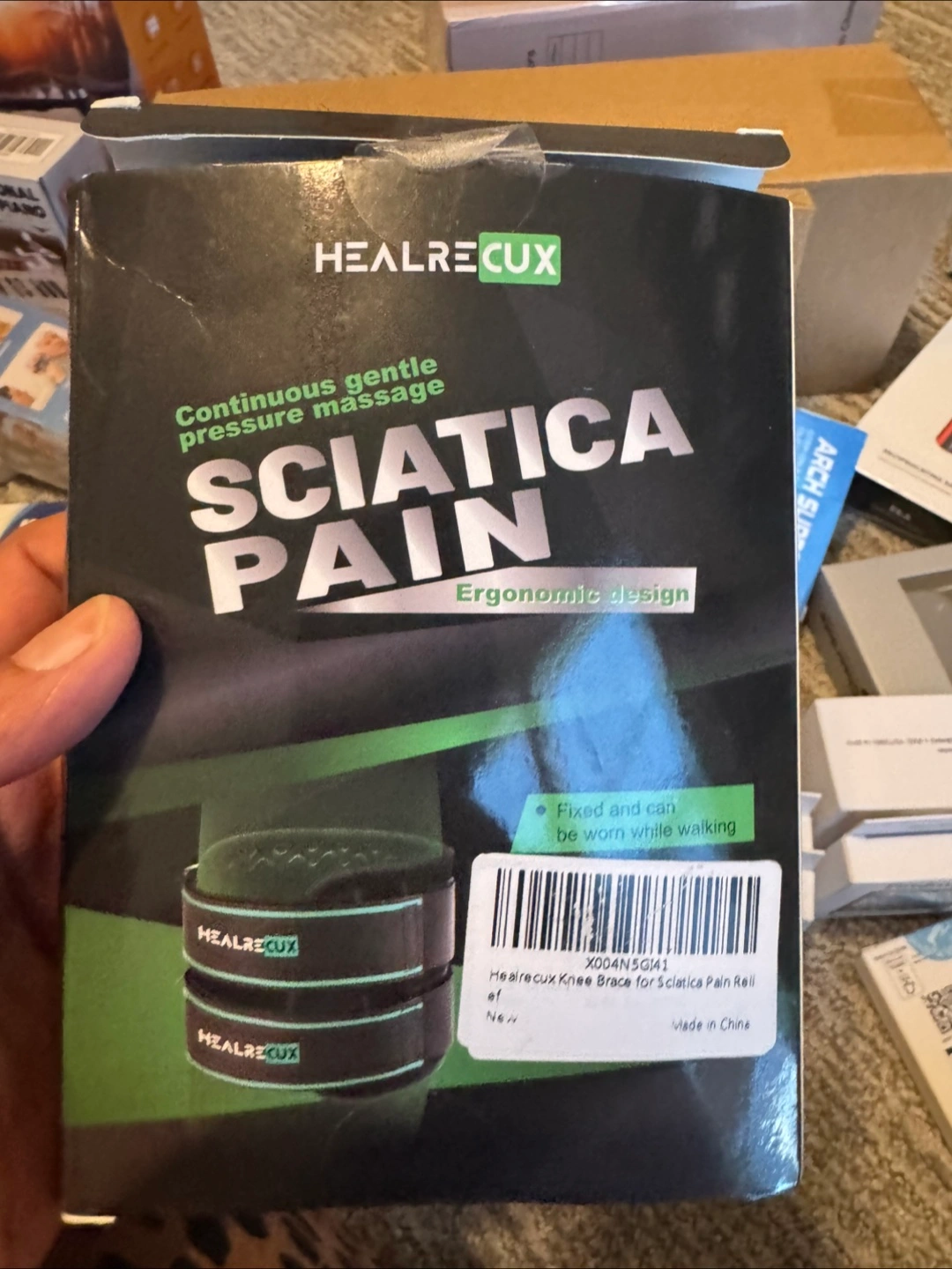 I'm selling a new Healrecux Knee Brace designed for sciatica pain relief! It features a continuous gentle pressure massage and ergonomic design. The brace is designed to be fixed and can be worn while walking. Feel free to reach out if you're interested!
