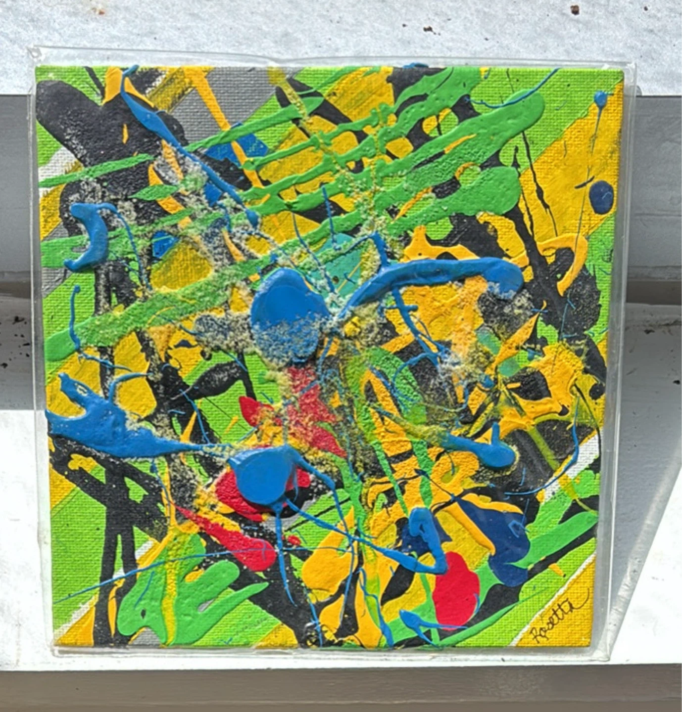 Original signed abstract painting by established artist Rosetta DeBerardinis (see Wikipedia above). Part of her affordable art series. Features vibrant colors and unique textures. Ready to add a pop of color to your space! Ready to frame. “Flamingo Dancing:Two’ 6” x 6” on canvas board. Reduced. $35 Read carefully…..: No apps or Zelle. Cash only!! Send date and time for payment on E. 34th Street and 1st Avenue before 8 pm across from NYU Hospital. Thanks.