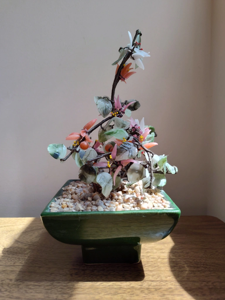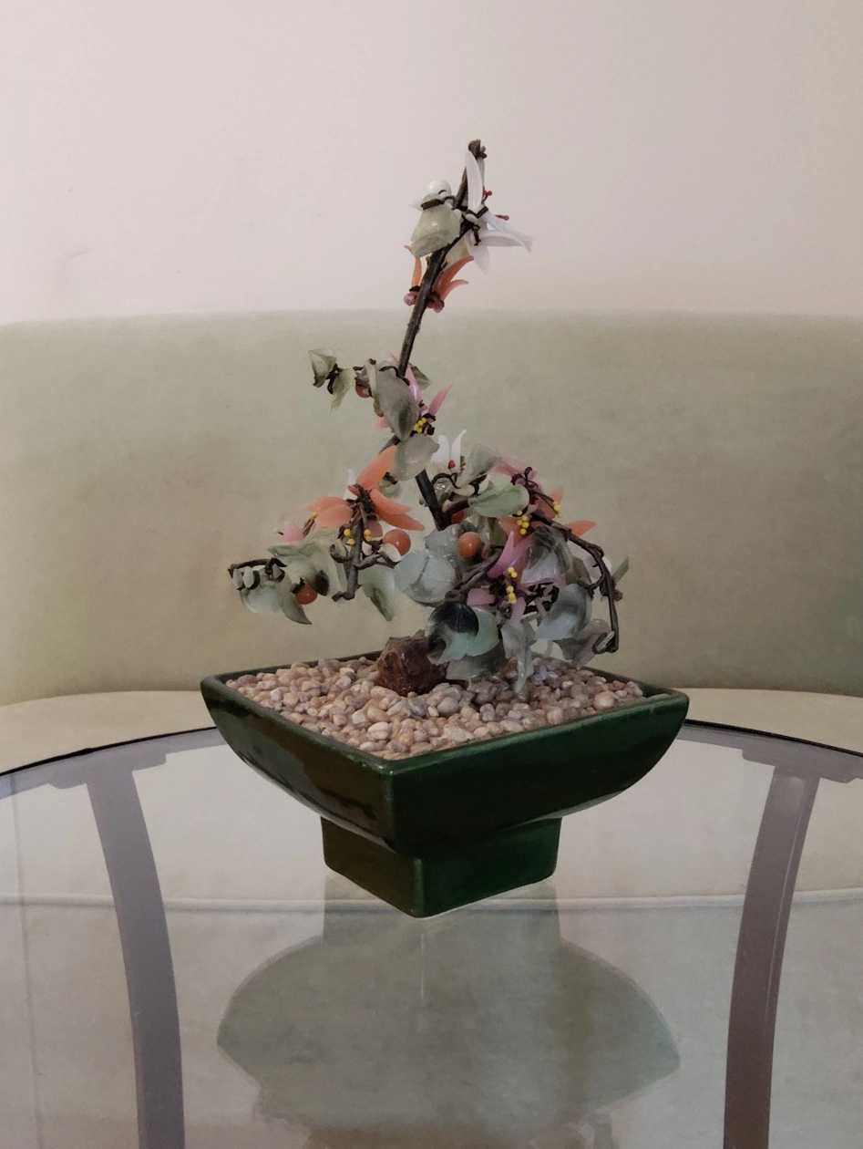 Free artificial bonsai tree in a green pot. It's a lovely decorative piece for any room