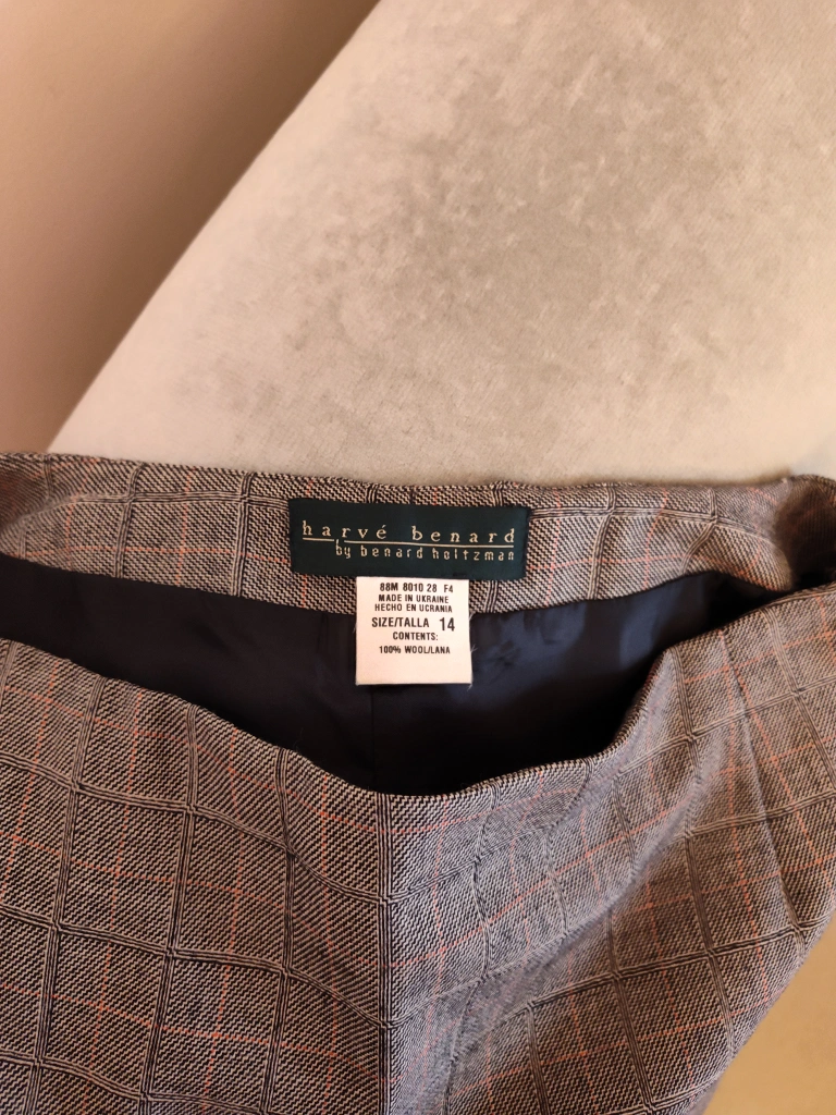Free Harvé Benard skirt by Benard Holtzman. It's a stylish plaid pattern in size 14. The material is 100% wool!