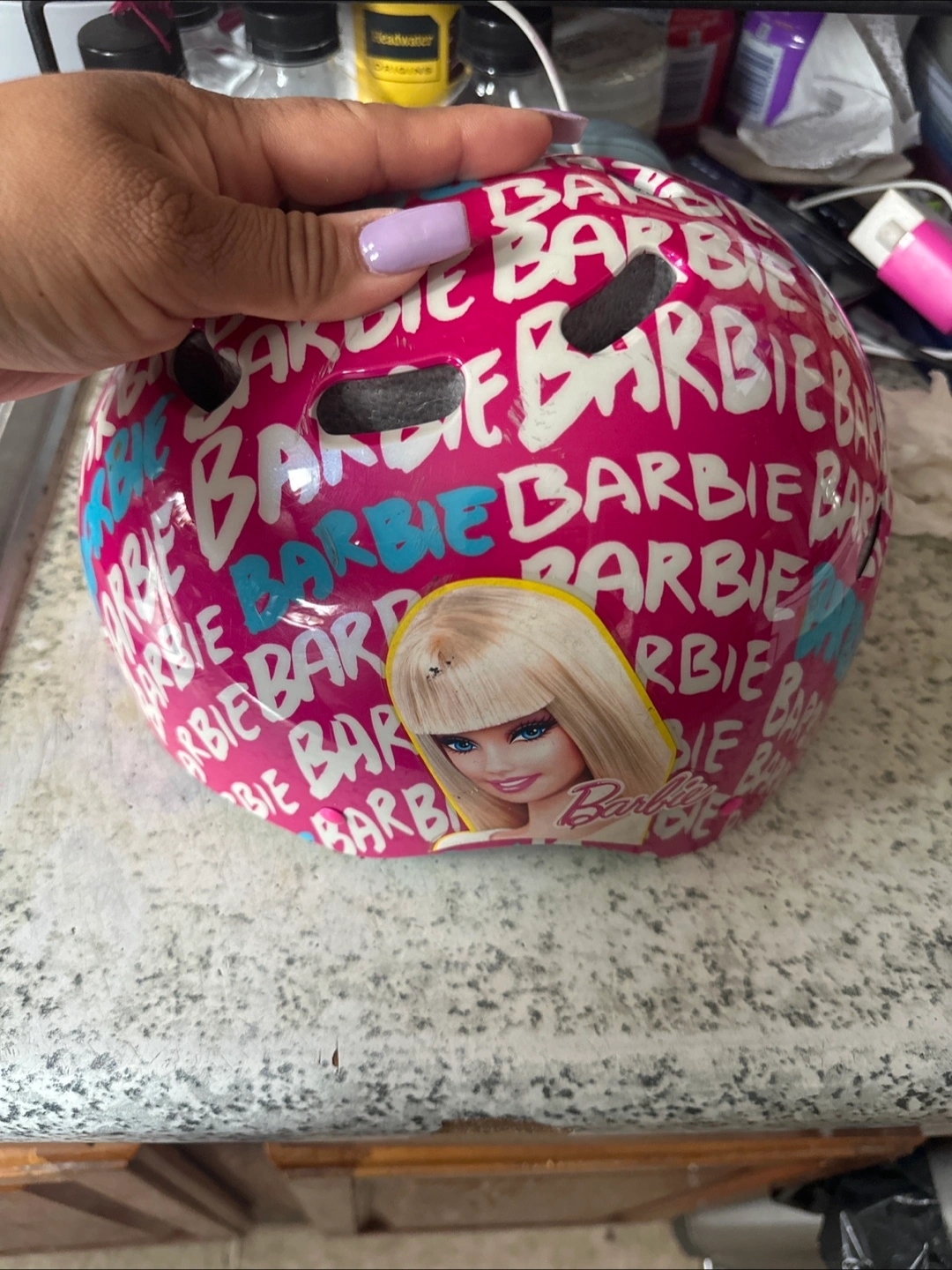 282Selling a Barbie helmet for skateboarding and roller skating! It's pink with the Barbie logo all over. - Size: 51-54 cm - Meets ASTM F1492 safety standards