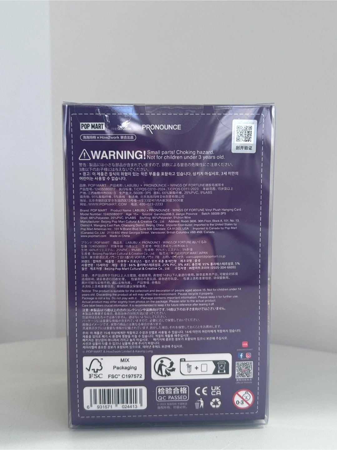 Selling a Pop Mart x Pronounce WINGS OF FORTUNE Vinyl Plush Hanging Card figure! It's in the original box, never opened. This adorable plush figure is perfect for collectors and fans. The box includes the figure itself, ready to display!
