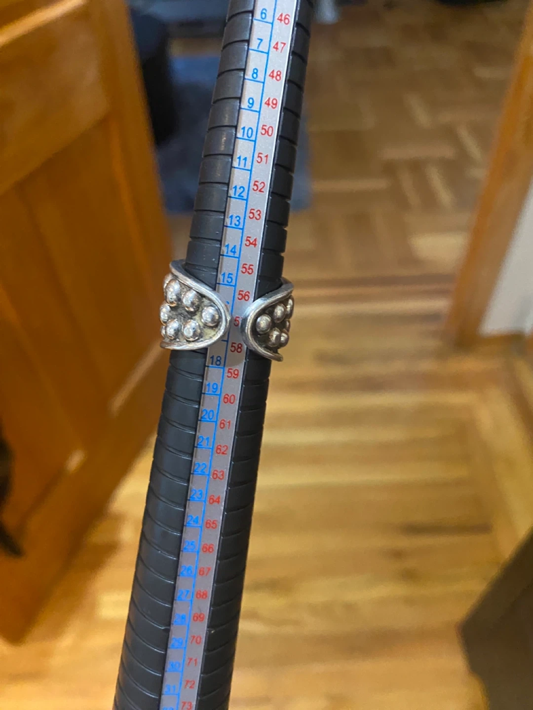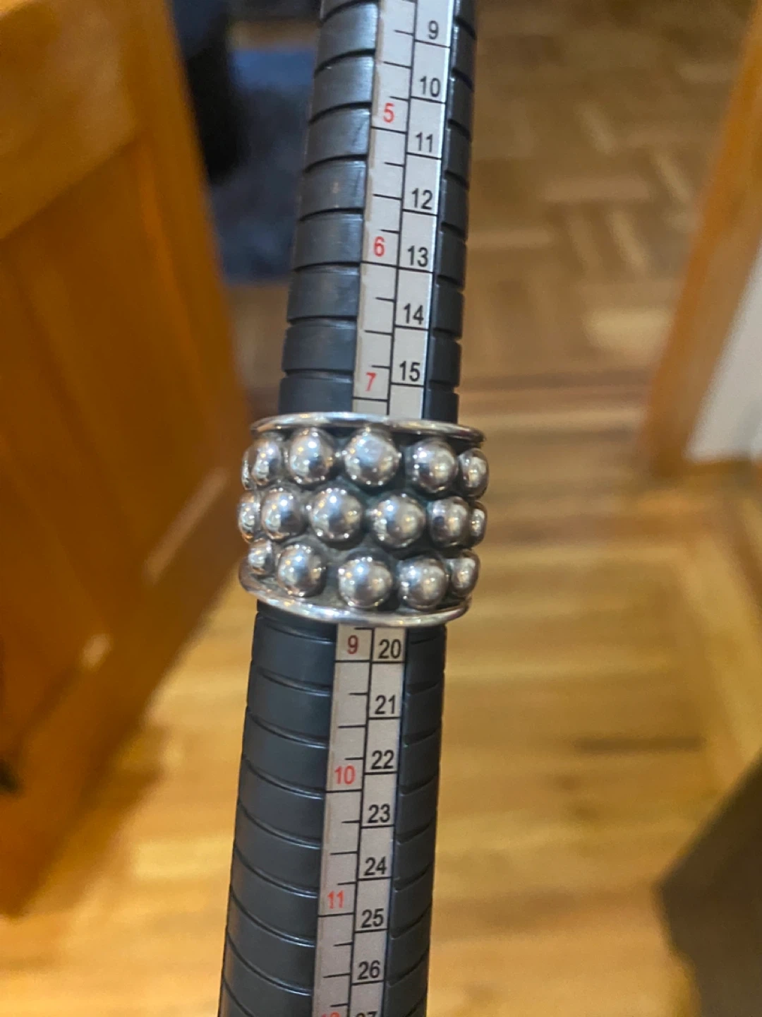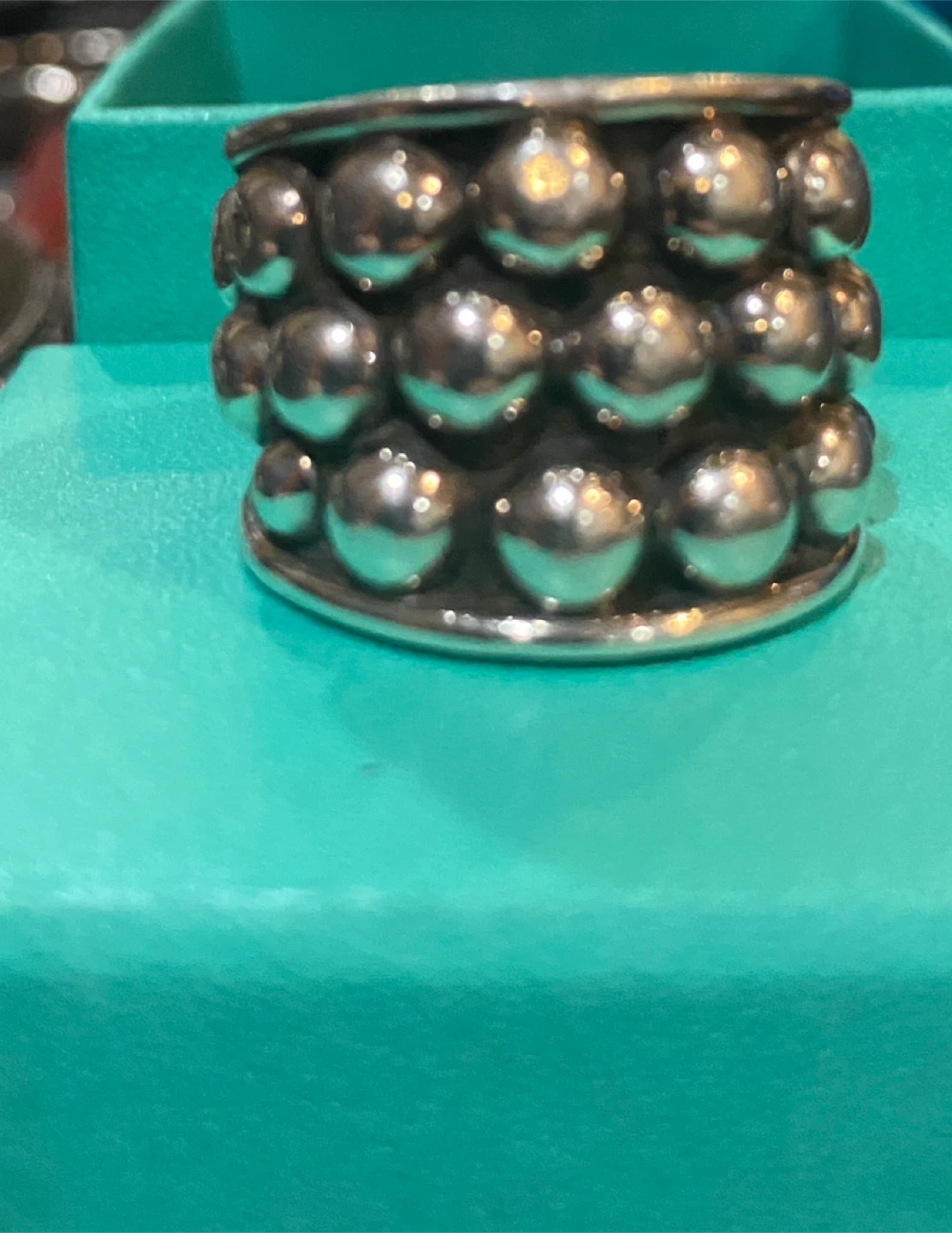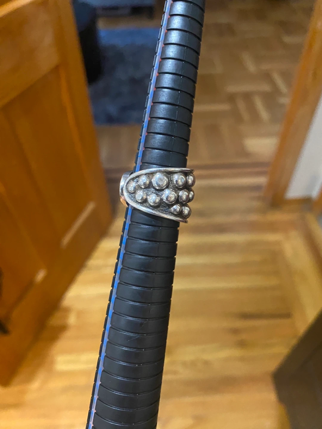 925 Selling a silver ring, appears to be a size 7.5 It has a unique beaded design and is in good condition. Perfect for adding a touch of style to any outfit