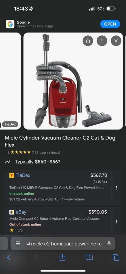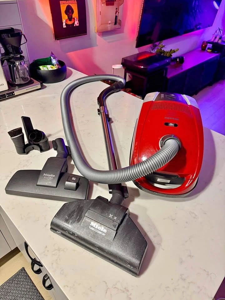 65Available, firm price! Retail price - 600$ Miele C2 Compact Homecare Powerline Canister Vacuum Cleaner, Red - in a great looking and working conditions! Vacuum cleaned and sanitized before sell. Pick up in Uptown, Chicago. Willing to ship. —— Features: 6-position suction control via rotary dial ExclusiveMieleAirClean Sealed SystemTM New, low-noise, 1,200-watt Vortex MotorTM, manufactured by Miele AirCleanFilterBagTM:typeFJM, 3.7 quart AirClean filter Optional HEPA AirClean filter (HA 50) Lightweight, telescopic stainless steel wand TurboComfort turbobrush (STB 205-3) Parquet Twister floor tool (SBB 300-3) Dusting brush, upholstery tool and crevice nozzle on VarioClipTM Lightweight Skeleton Construction 33 ft cleaning radius