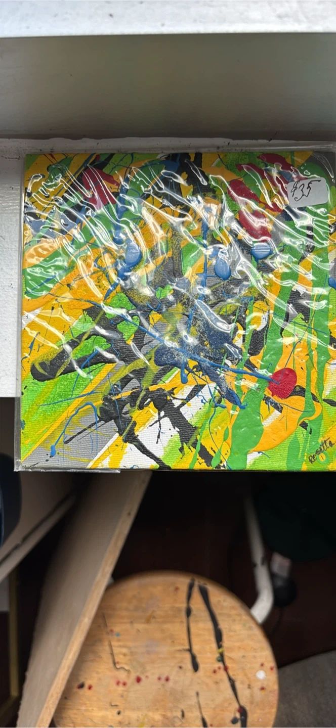‘Flamingo Dancing: Three’ Original abstract painting by American artist Rosetta DeBerardinis, see Wikipedia above. This piece is vibrant with colors and has a unique texture. Perfect for adding a modern touch to any room. 6” x 6”. Ready to frame, Original on canvas and signed. Read carefully…… Send date and time for purchase on E. 34th Street and 1st Avenue across from NYU Hospital before 8 pm. Cash only! No Zelle or apps. Thanks.