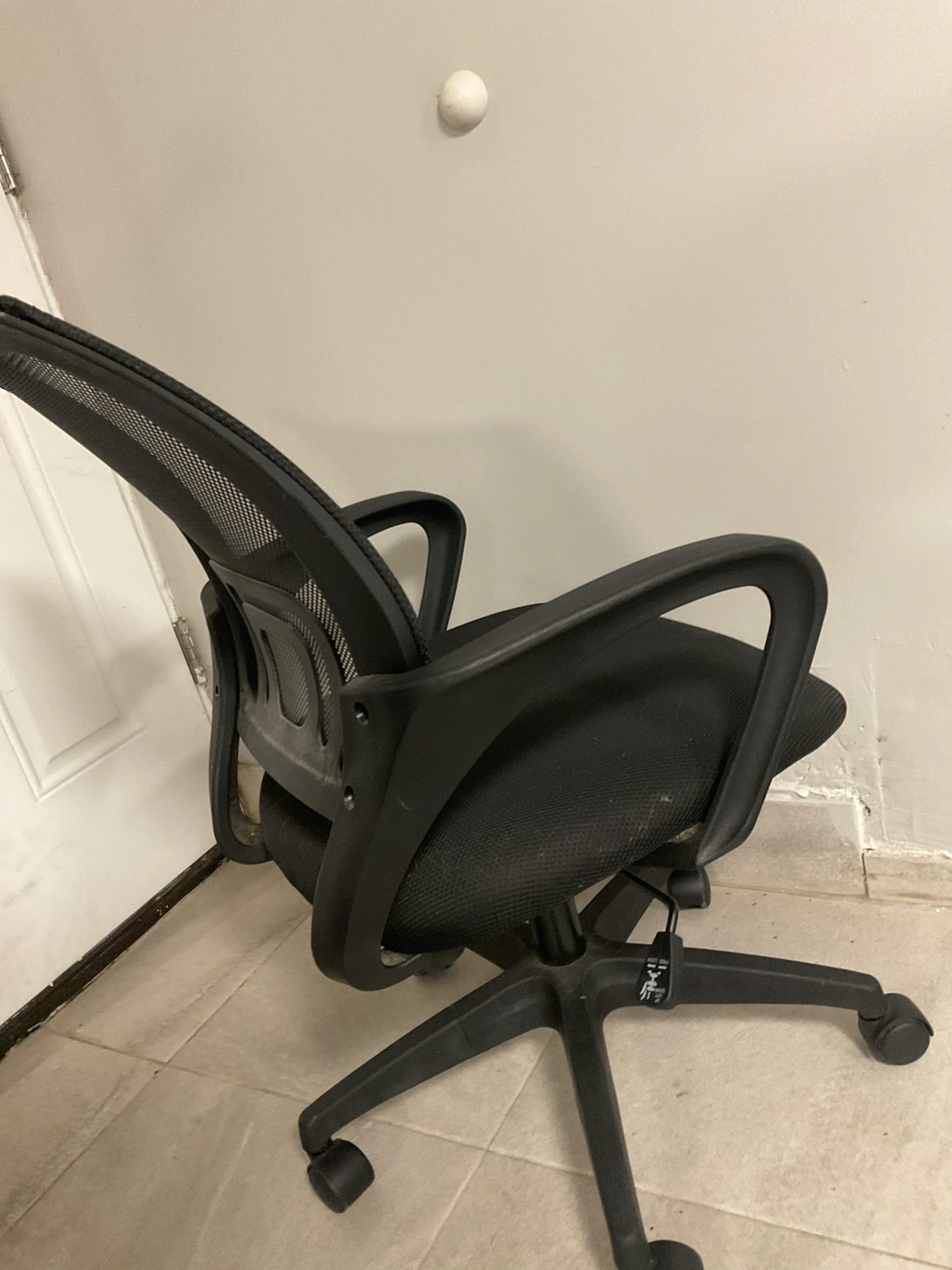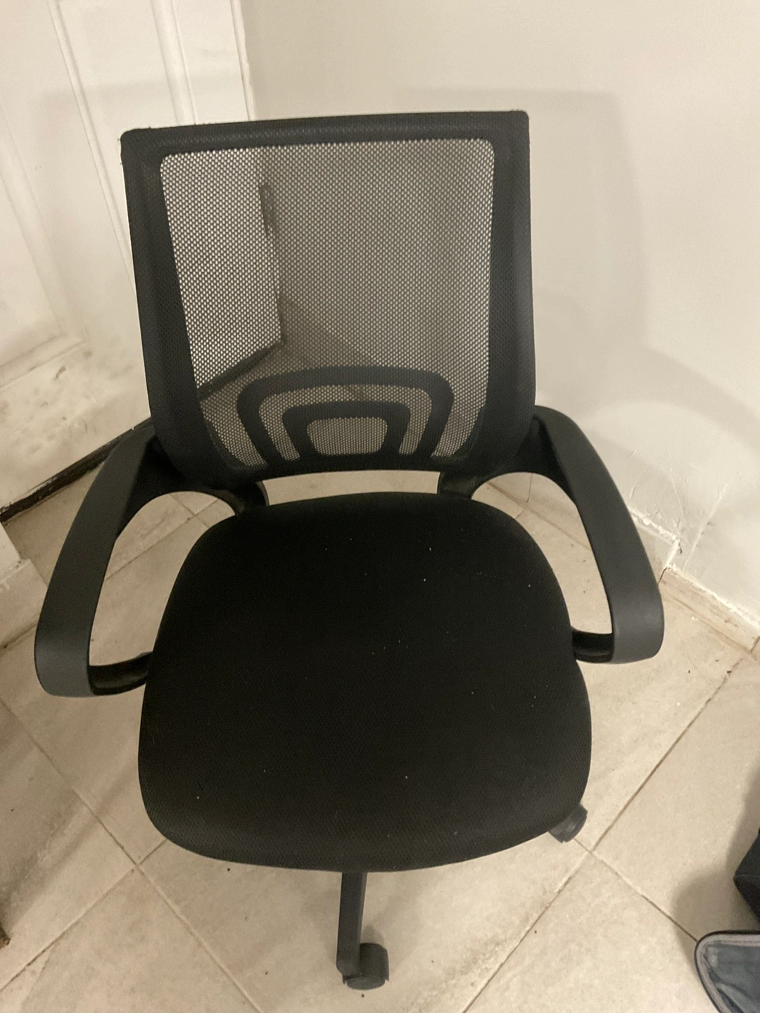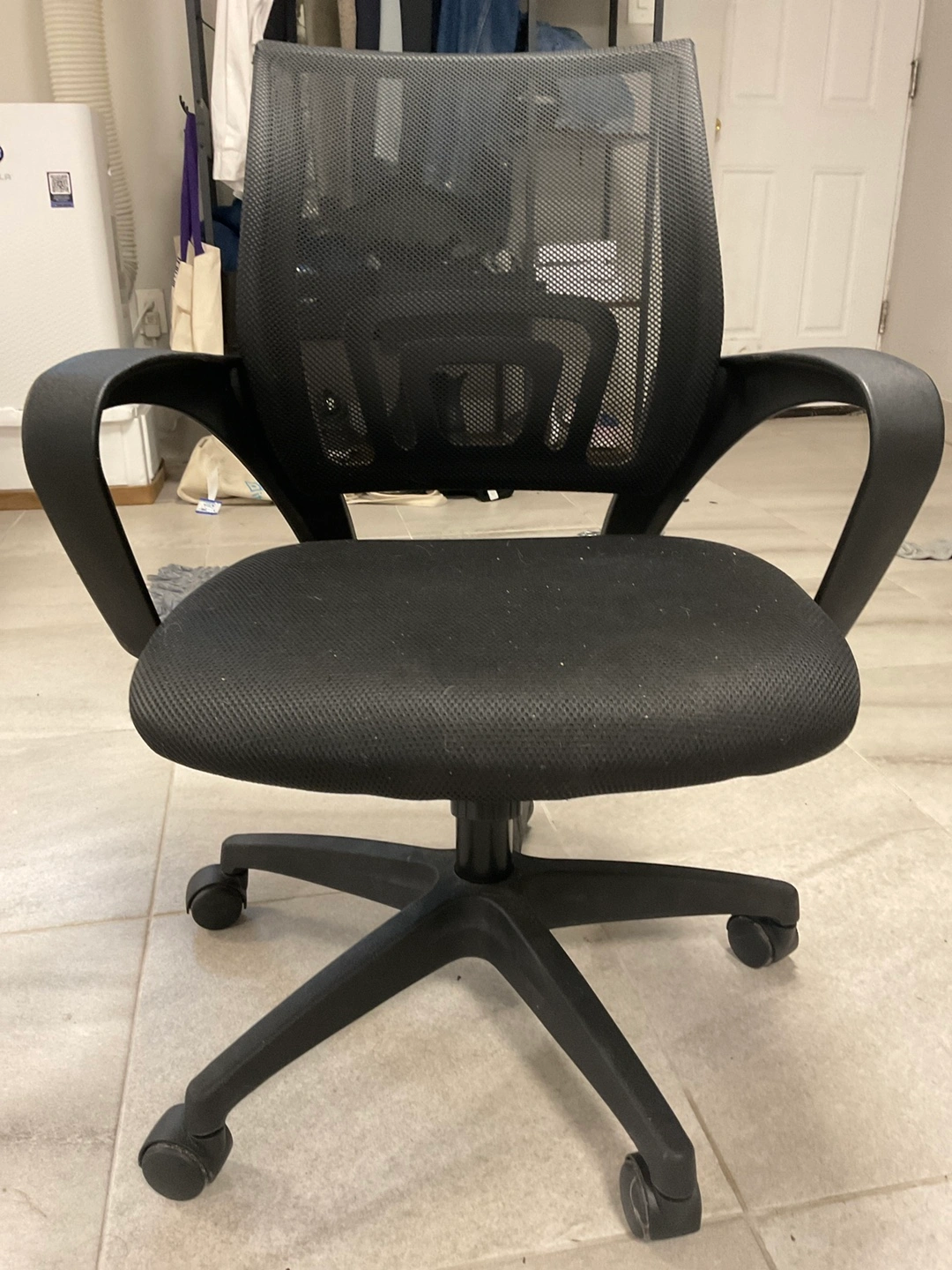 Selling a comfortable black mesh office chair. It's in good condition and ready to use in your home office or study space. The mesh back provides good ventilation, and the chair has adjustable height and swivel features for added convenience