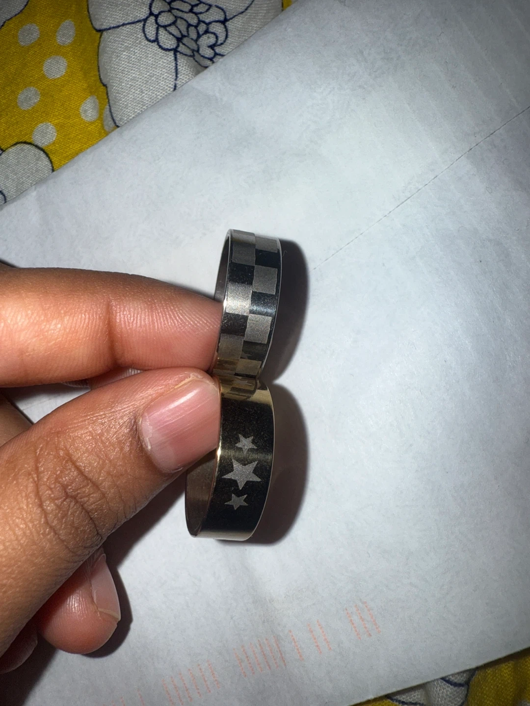 Selling two rings with unique designs! One has a cool checkered pattern, and the other features star designs.