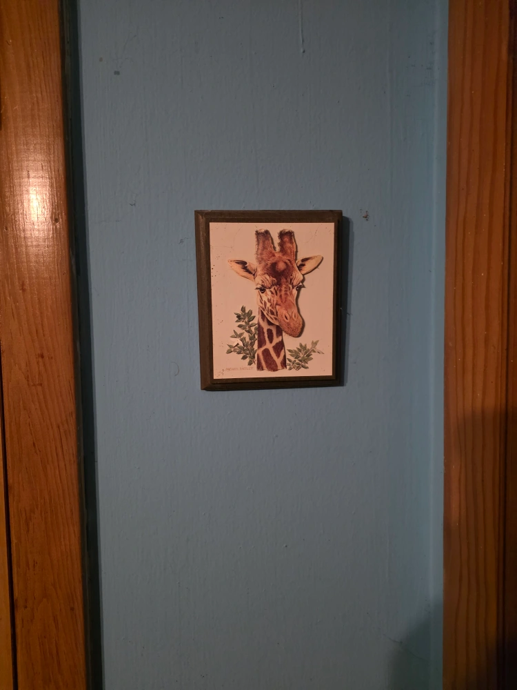 Here's a framed 3d rendering of a giraffe. It's in good condition and ready to hang on your wall.