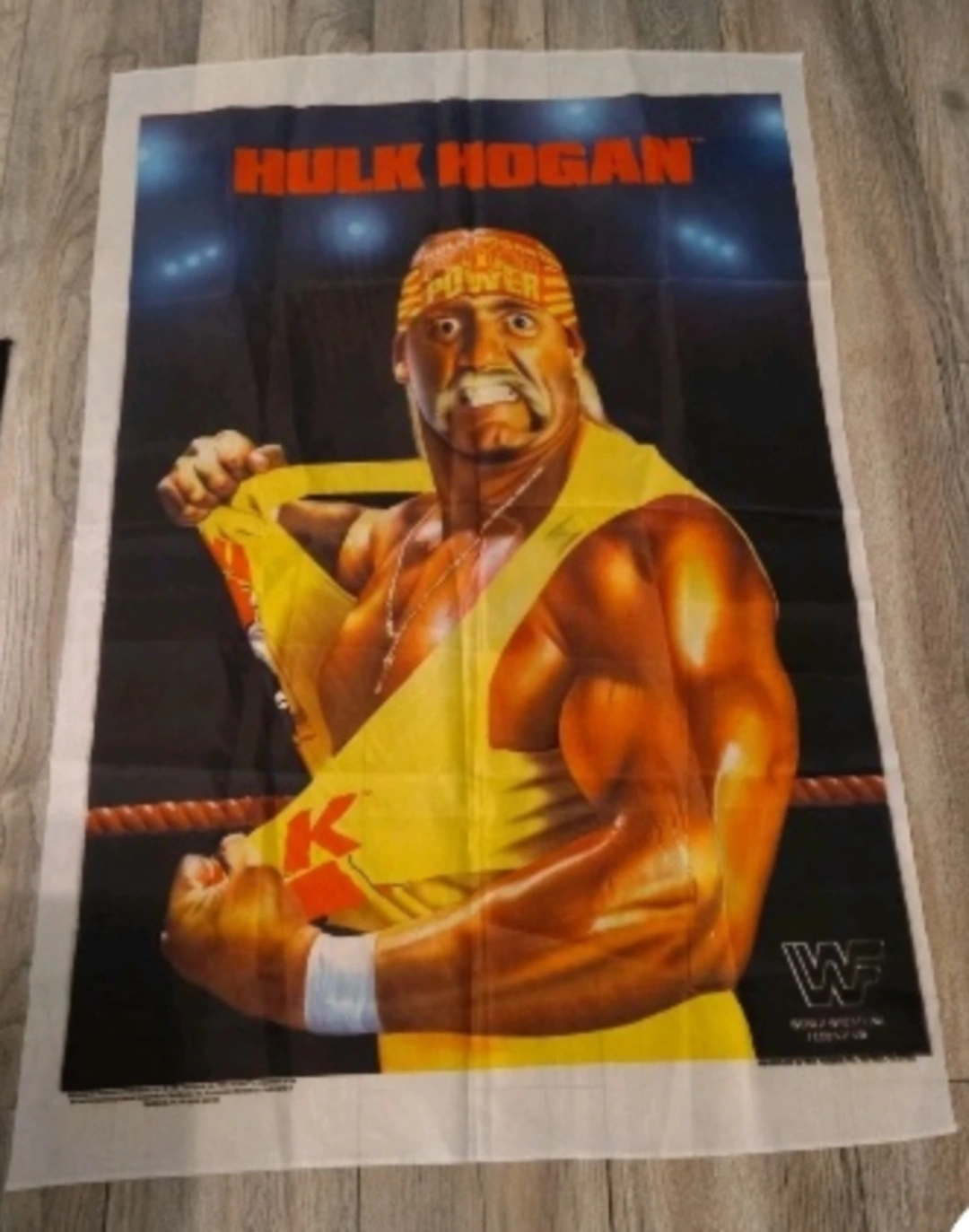 Selling a Brand new! Hulk Hogan WWF wrestling tapestry! It features Hulk Hogan in his iconic yellow and red attire. Perfect for any wrestling fan or collector! It's in mint condition! No tears ,snags or holes!