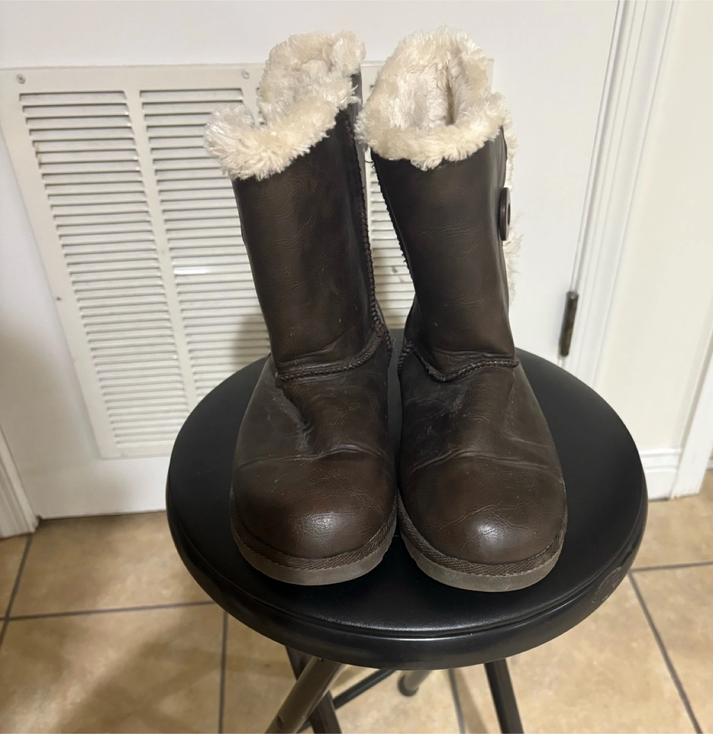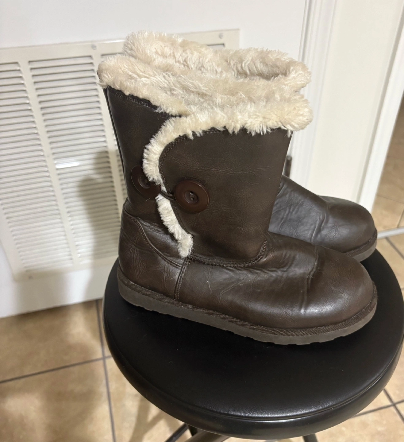 Giving away a pair of brown winter boots with a cozy fur lining! They show some signs of wear, as you can see in the photos, but still have plenty of life left in them. Perfect for keeping your feet warm and stylish during the colder months.