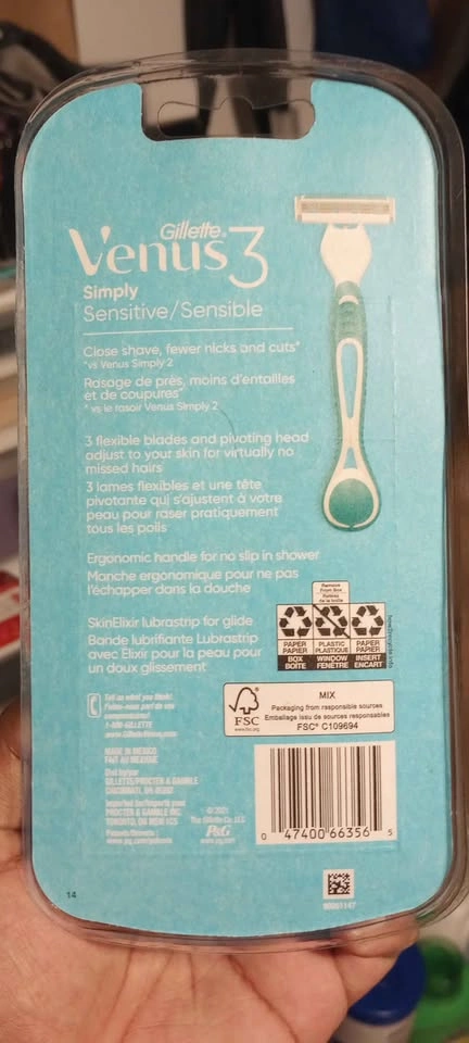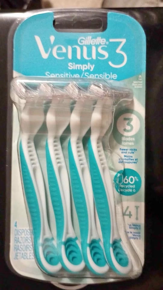 Selling a set of 2 Gillette Venus Simply Razors Type: Sensitive Blades: 3-blades each Qty: 4 razors per pack Only available for pickup in DUMBL **Check out my other listings and build a large bundle for delivery; minimum for delivery is $100