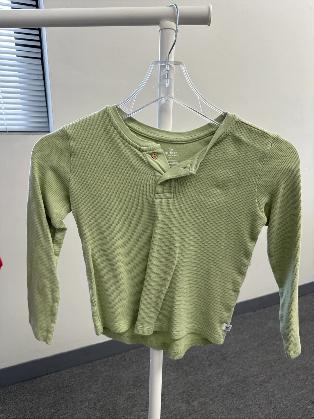 This is a cute Honest Baby Clothing top made from 100% organic cotton. It's a size 5T and in a lovely light green color. Perfect for your little one!