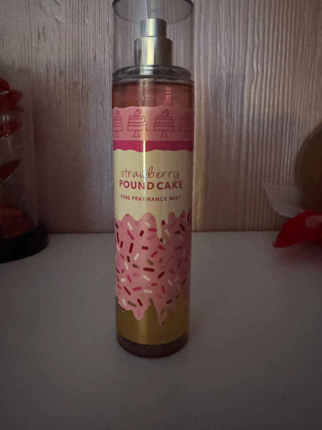 Selling a Bath & Body Works Fine Fragrance Mist in the Strawberry Pound Cake scent! It smells delicious, just like the dessert. Perfect for a quick refresh during the day