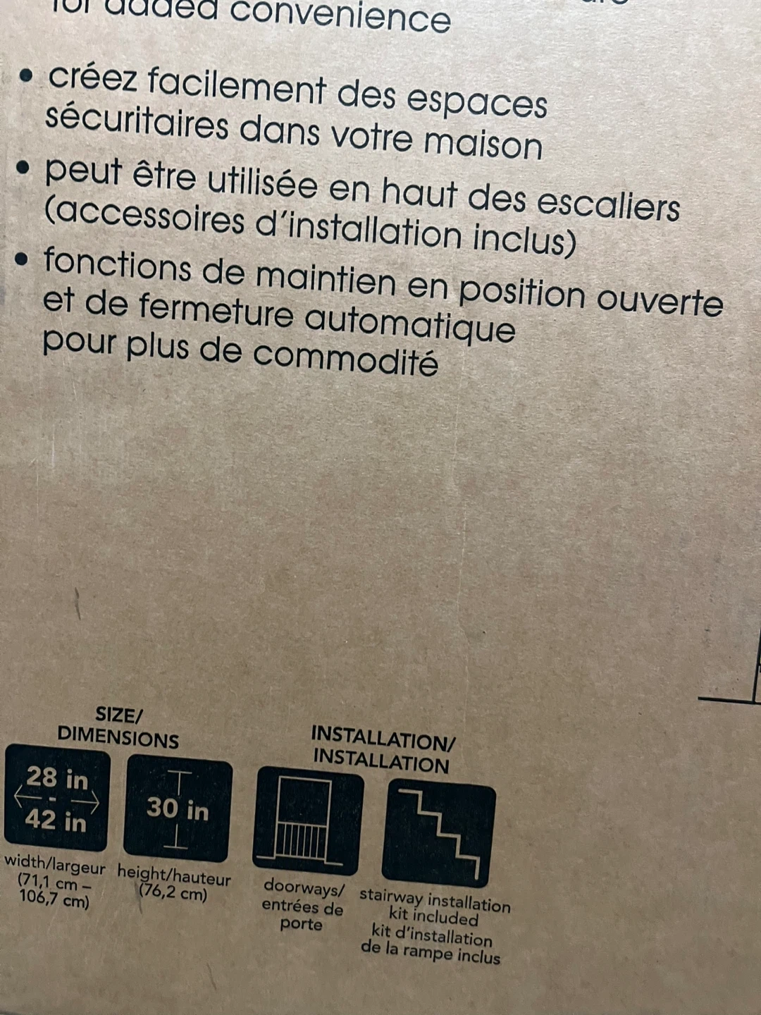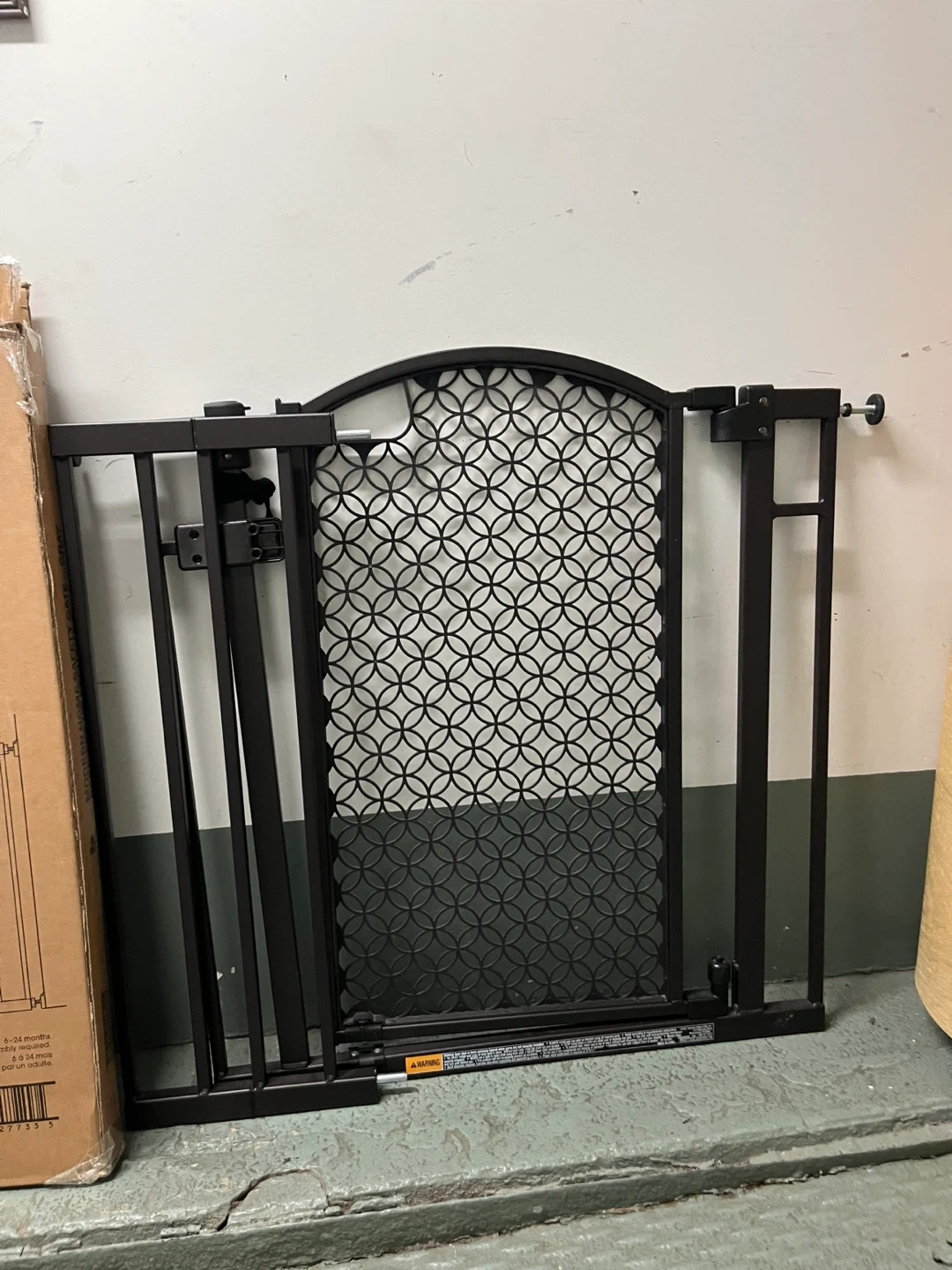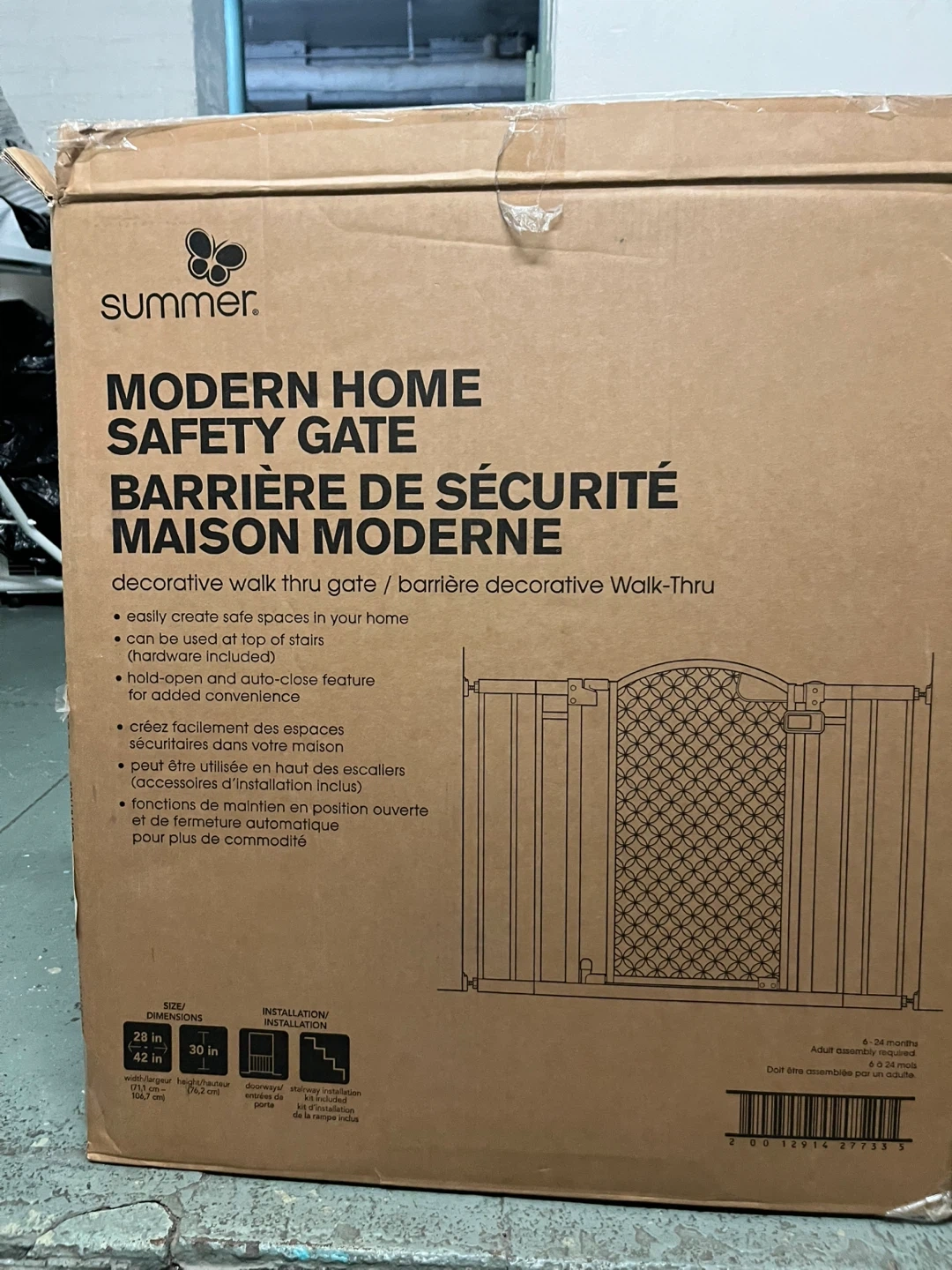 Selling a Summer Modern Home Safety Gate. This decorative walk-thru gate is perfect for creating secure spaces in your home. It can be used at the top of stairs (hardware included) and features a hold-open and auto-close feature for added convenience.
