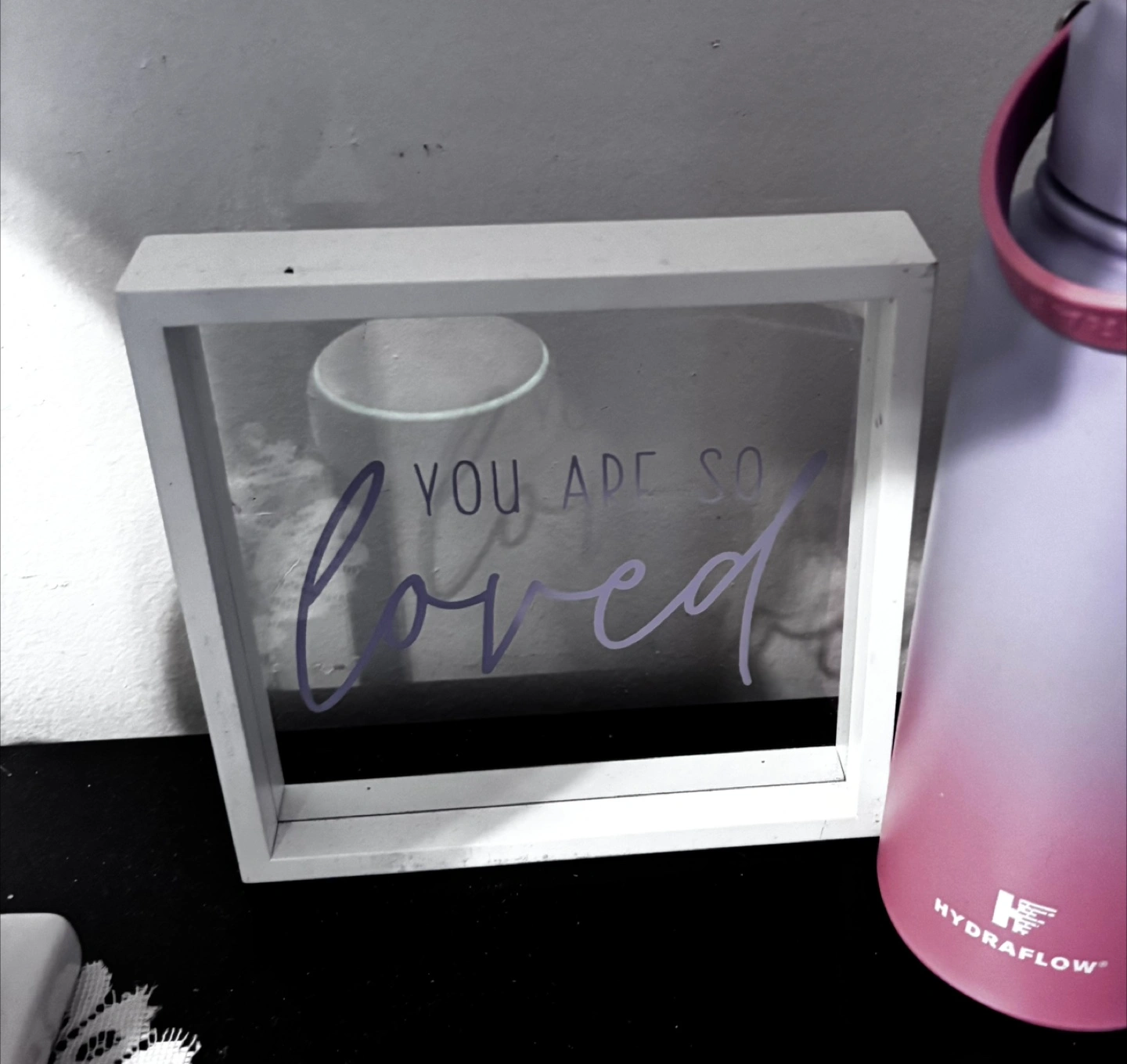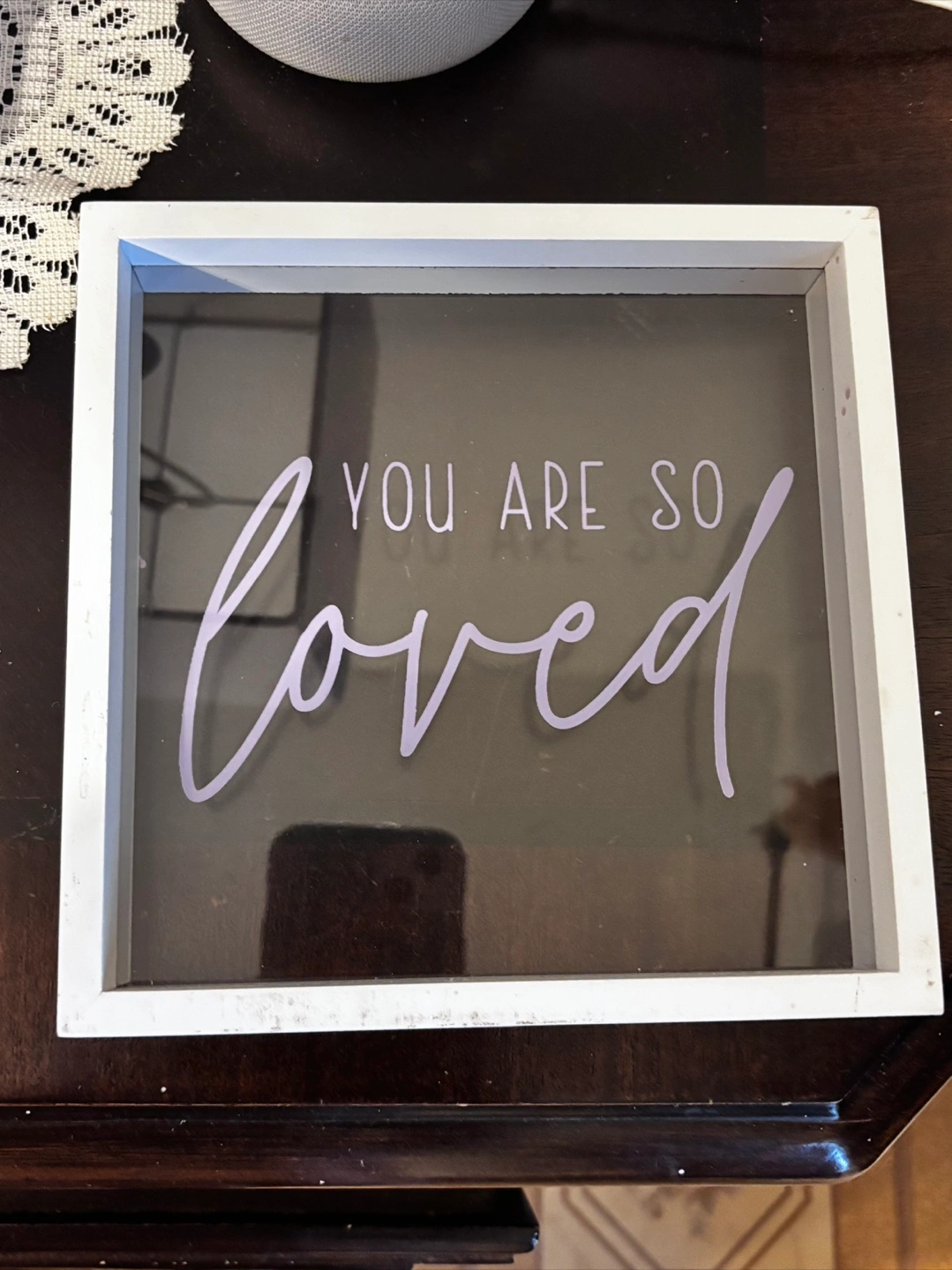 1000+This is a super cute white frame with the words "You are so loved" on the glass. It's in great condition and would look great in a nursery or any room!