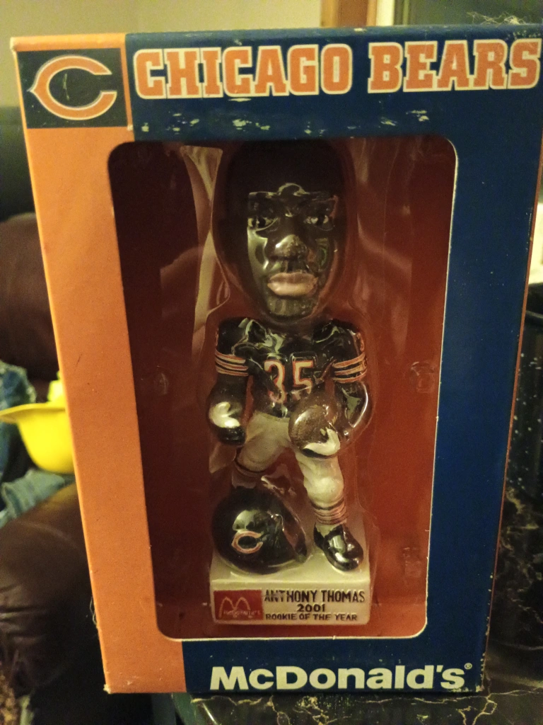 Selling a McDonald's Chicago Bears Anthony Thomas 2001 Rookie of the Year bobblehead. It comes in the original box
