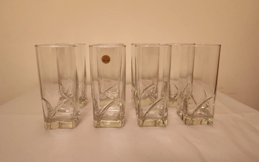 Selling a beautiful 8 piece set of Durabor highball glasses. They feature a stylish design and are perfect for everyday use or entertaining. They're in great condition and ready for a new home!