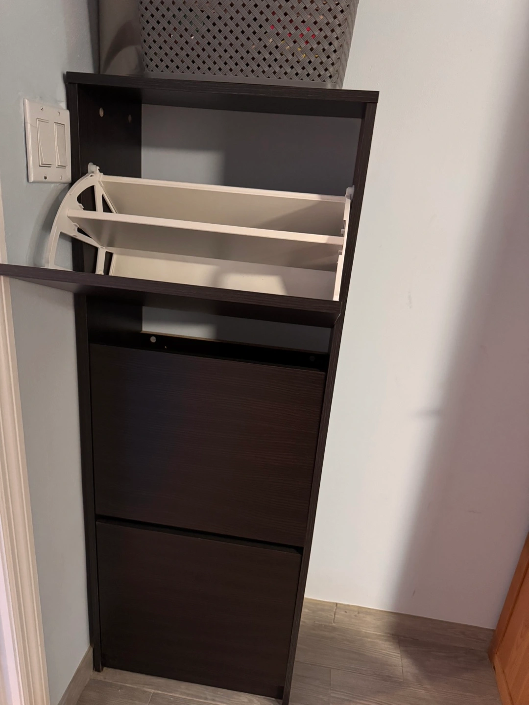 Selling 2 dark brown IKEA shoe cabinets! It's in great condition and perfect for keeping your entryway organized. This cabinet is a stylish and functional storage solution for your shoes $100 for both