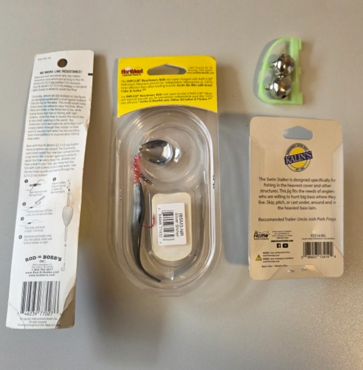 207Giving away a collection of fishing lures, all new in their original packaging! Includes: - Rod-N-Bobb's EZ-Flo Slip Bobber - Super Charged Impulse Reactionary Baits - Kalin's Swim Stalker Jig 1/4oz