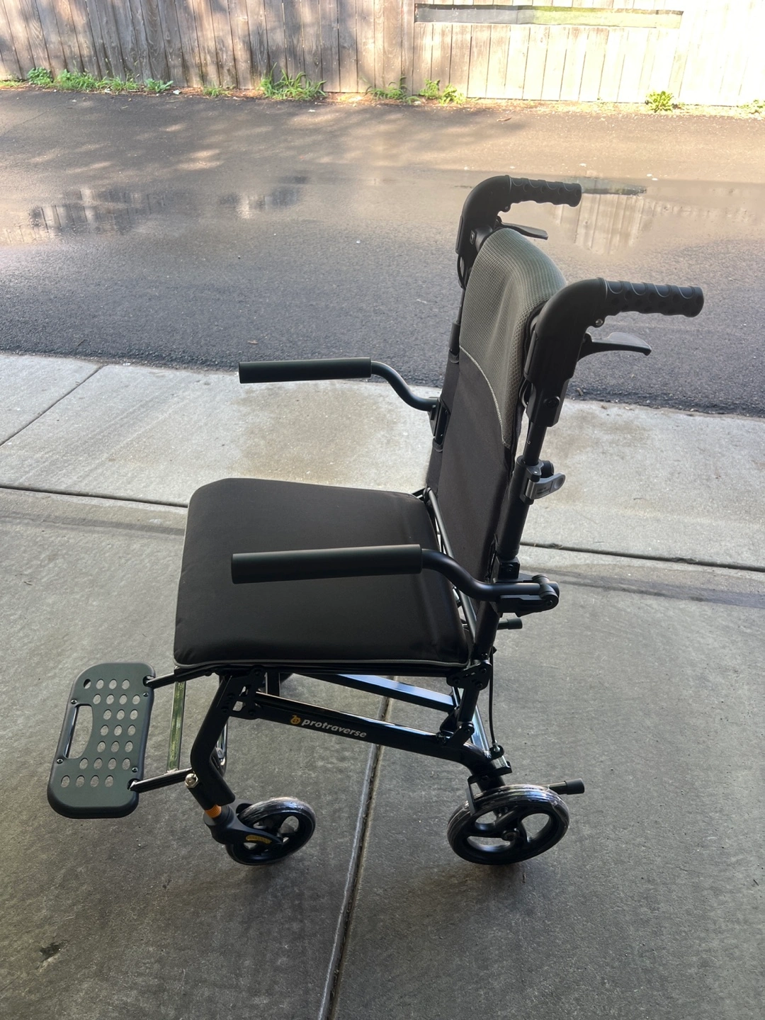 Selling a new Protraverse transport wheelchair! It's the P-LTW0519GY model. This lightweight, foldable, and durable aluminum chair comes with its original box. Perfect for easy transport and storage