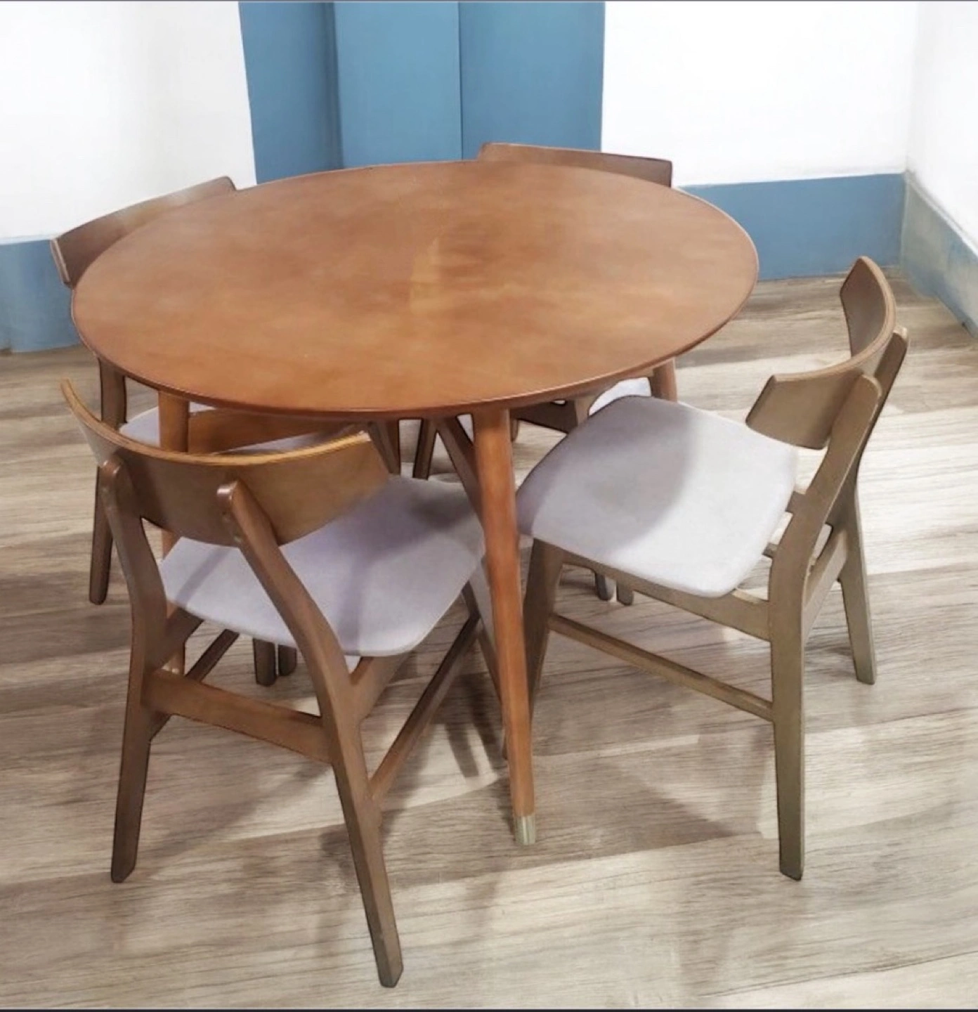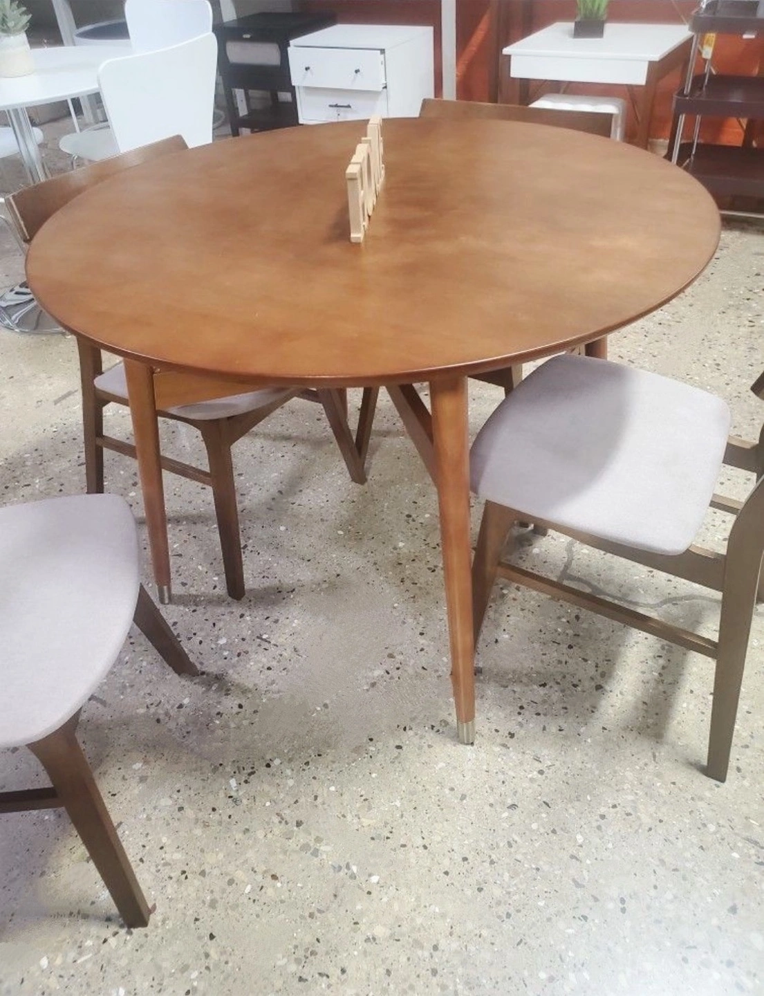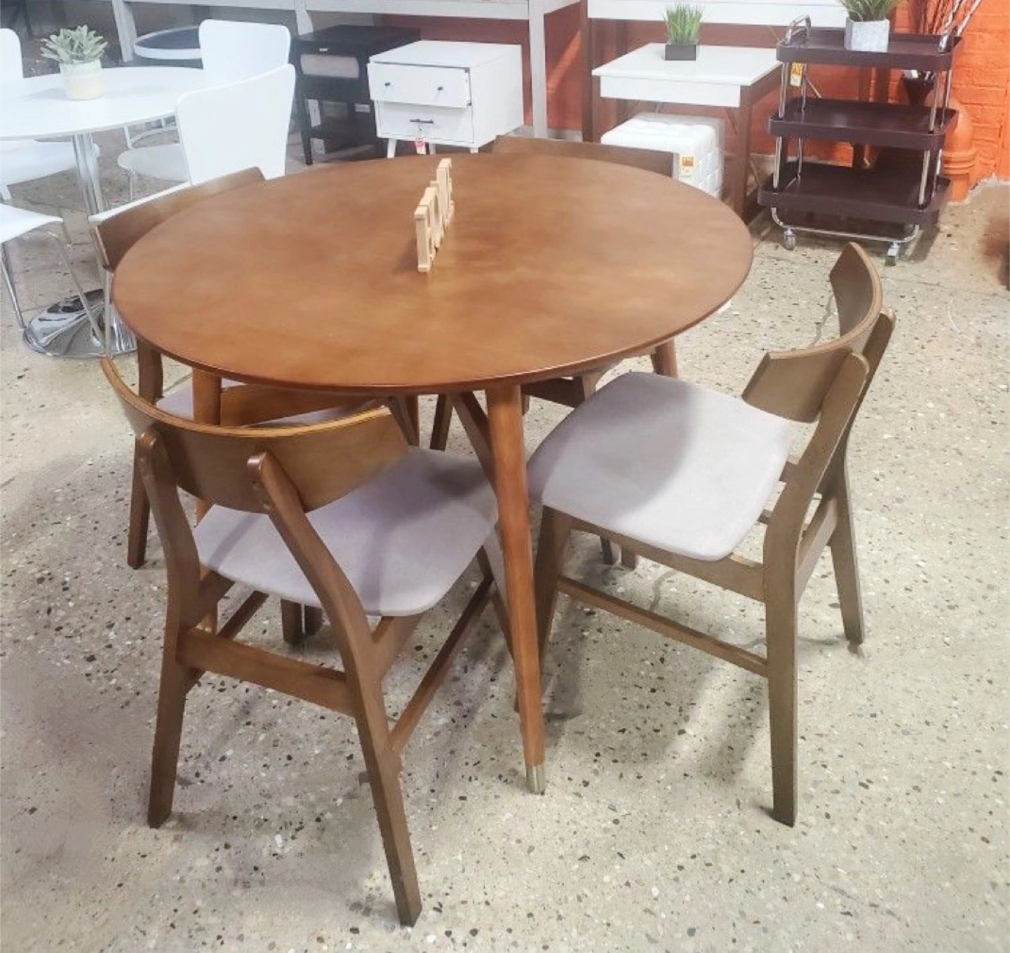 New 5 Piece Mid Century Modern Round Kitchen or Dining Set * Table Dimensions: 43” W x 43” D x 30” H * Chair Dimensions: 29.3" x 19.6" x 17" * Includes 4 Chairs and Table * Already Assembled * Trusted Seller / Read/ See My Reviews! Follow Me For Amazing Deals Listed Daily!