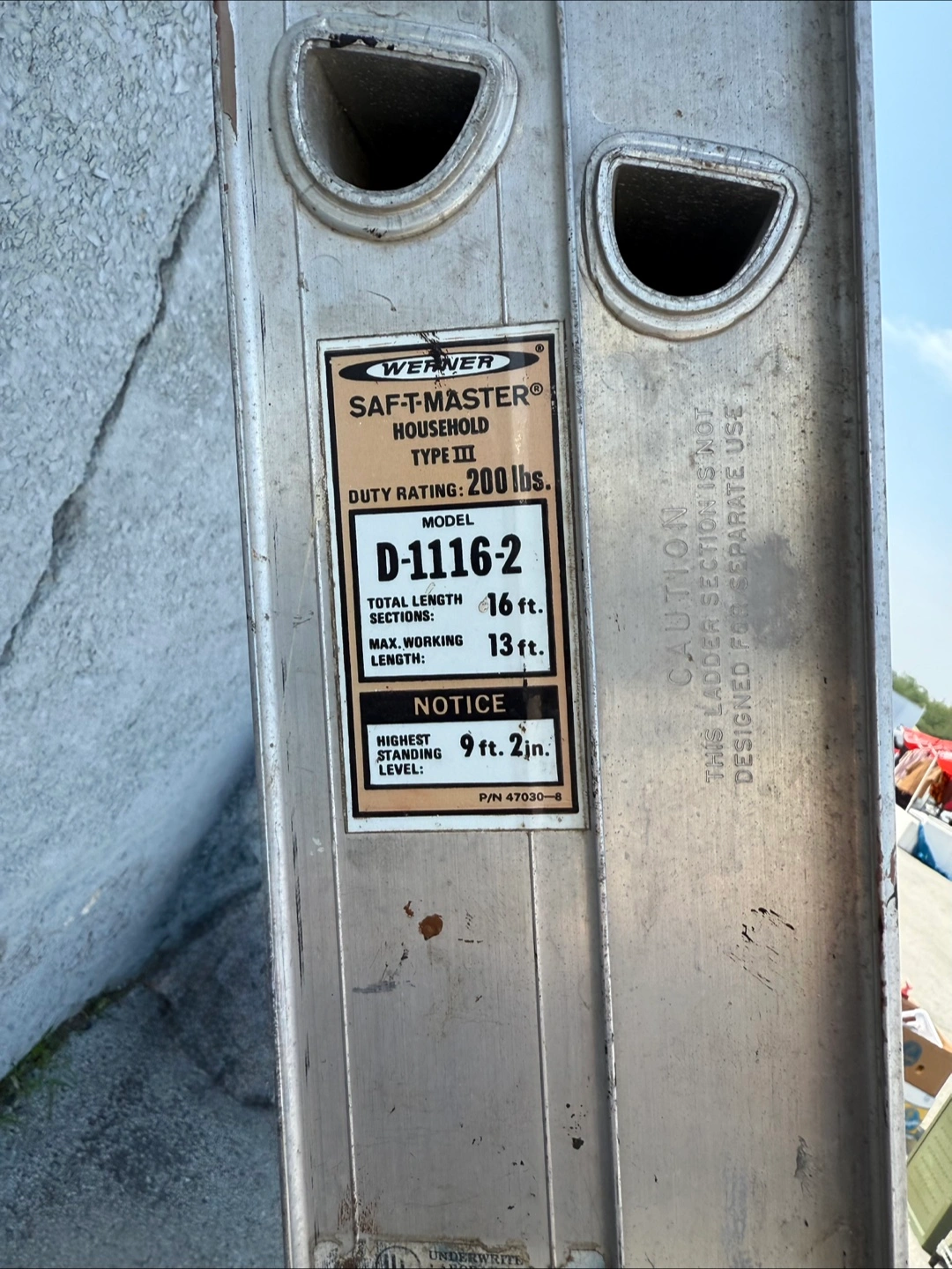 Selling a Werner SAF-T-MASTER household ladder, Type III. Aluminum 16 ft ladder in good working condition. $80.00 or best offer.
