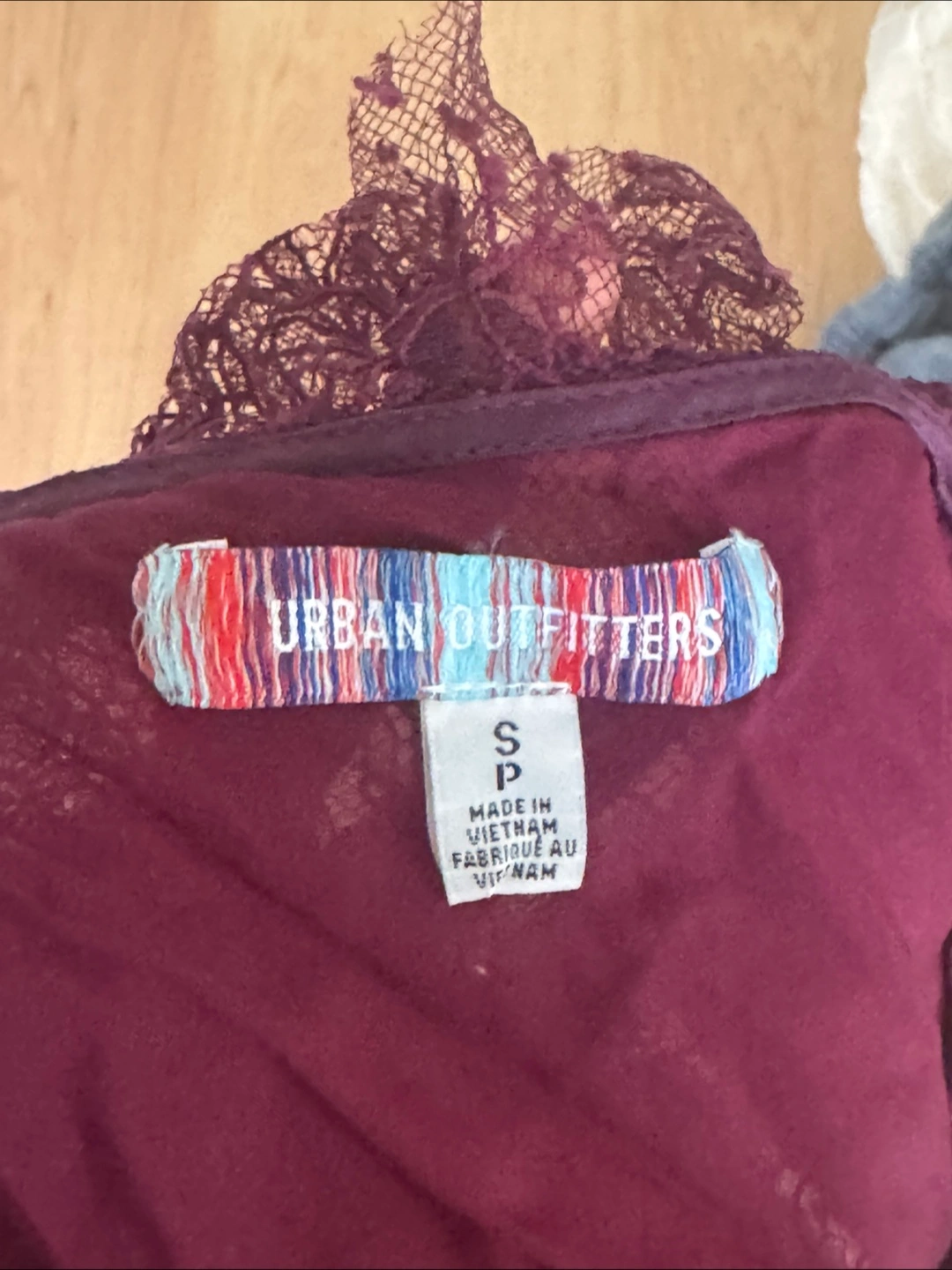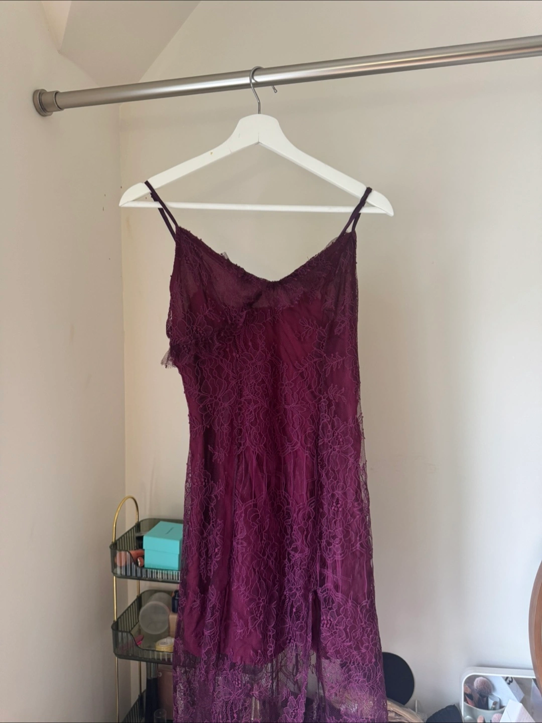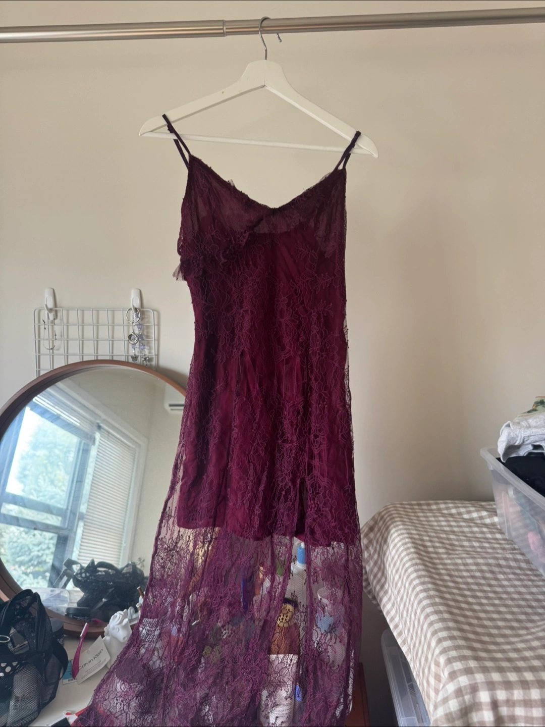 This is a beautiful Urban Outfitters lace dress in a deep wine color. It's a size small and in great condition. Perfect for a night out or a special occasion!