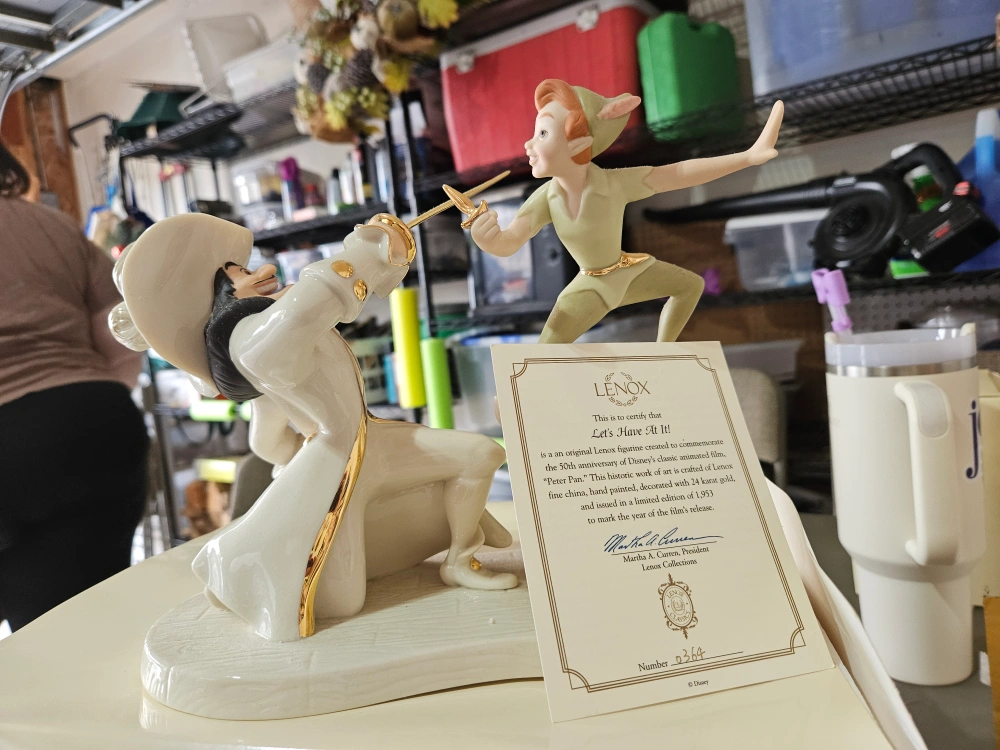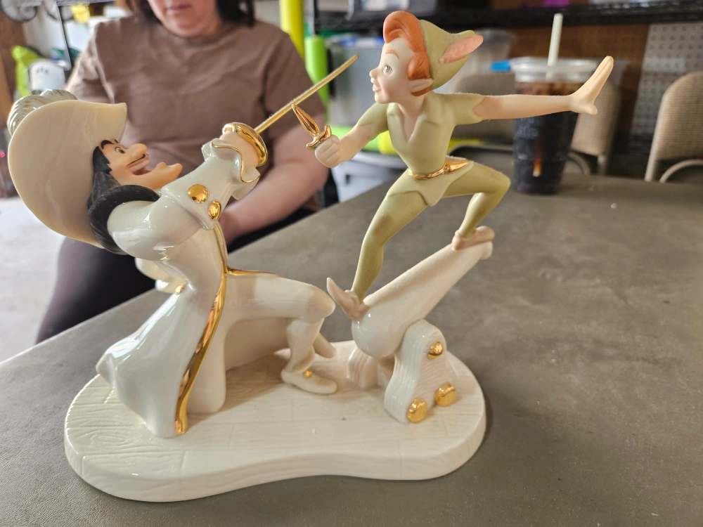 This is a Lenox figurine created to commemorate the 50th anniversary of Disney's classic animated film "Peter Pan"! This dramatic work of art is crafted of Lenox fine china, hand painted, decorated with 24 karat gold, and issued in a limited collection of 1,953 to mark the year of the film's release