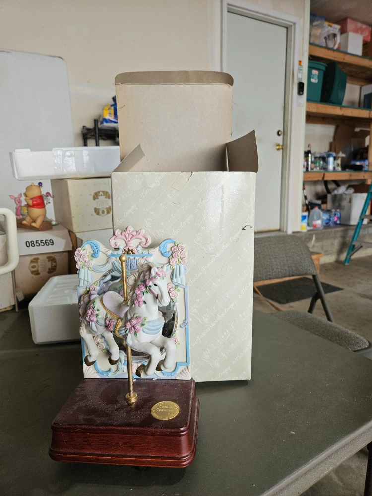 This is a lovely carousel horse music box from The San Francisco Music Box Company. It's in great condition and comes with its original box. A charming addition to any collection!