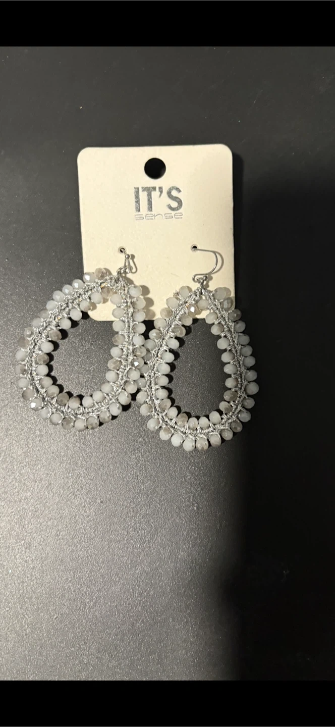 65Selling a pair of IT'S sense beaded teardrop earrings. These are a lovely light gray color and would be a great addition to any outfit!