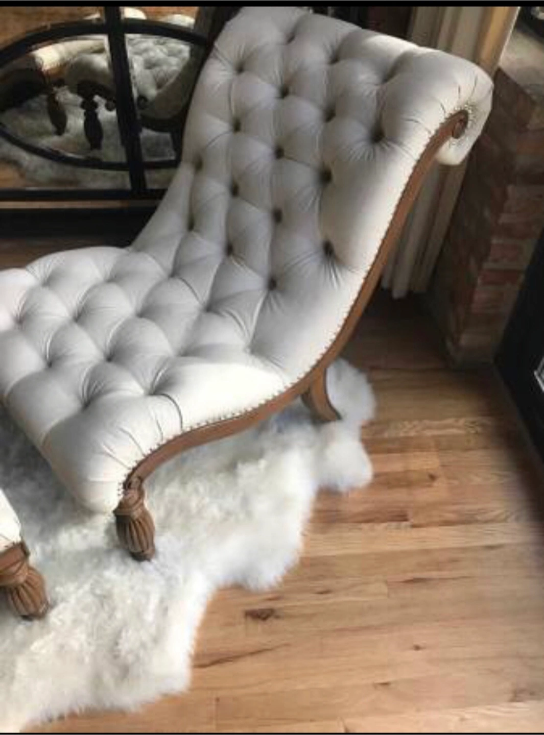 Selling a tufted chase lounge sofa W/ottoman bench with a curved design. It has a neutral color upholstery and wooden legs. This ottoman would be a great addition to any living room or bedroom!