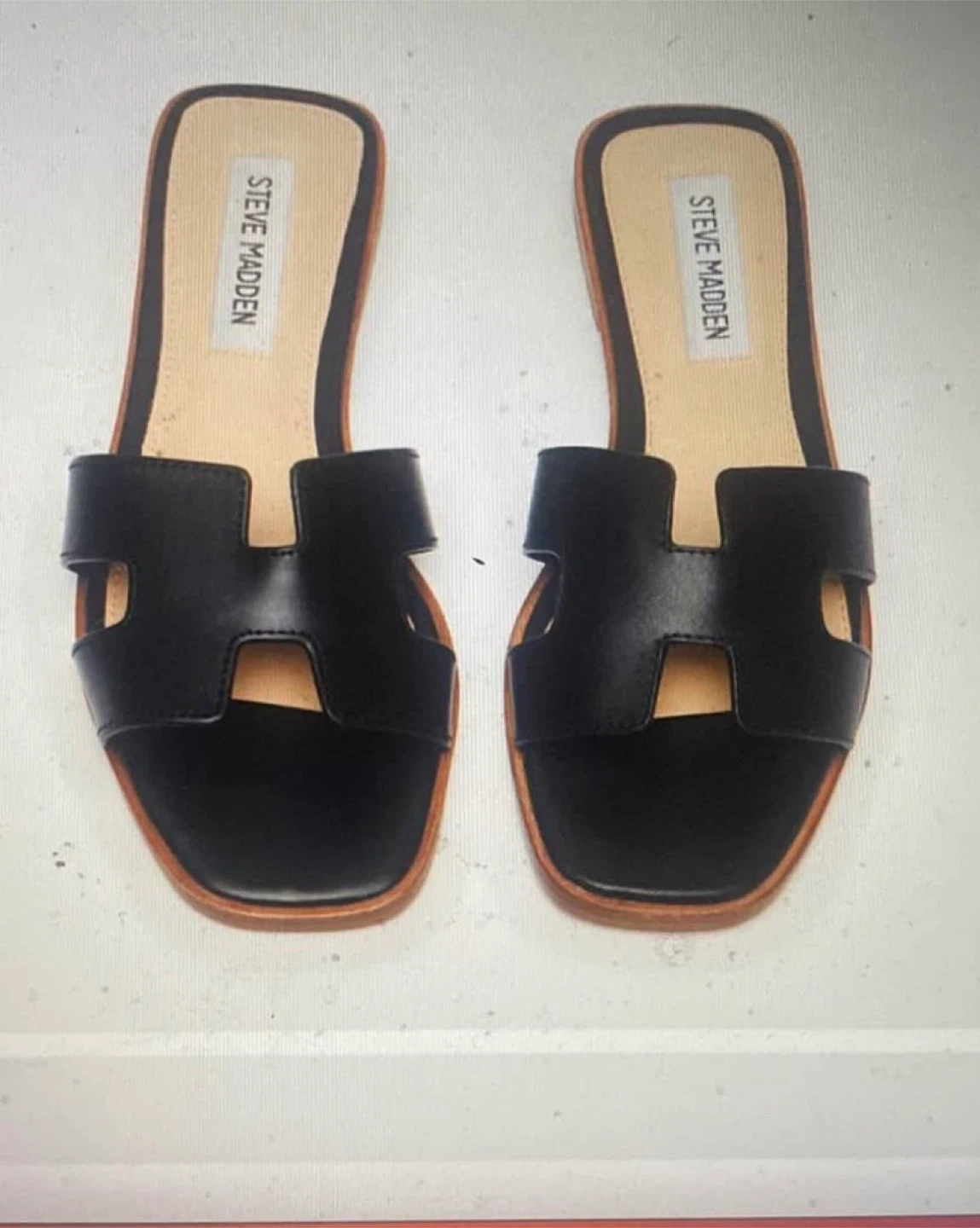 27These Steve Madden sandals are in great condition and ready for a new home! They feature a stylish black leather design that's perfect for any occasion. Easy to slip on and off, they're both fashionable and comfortable!