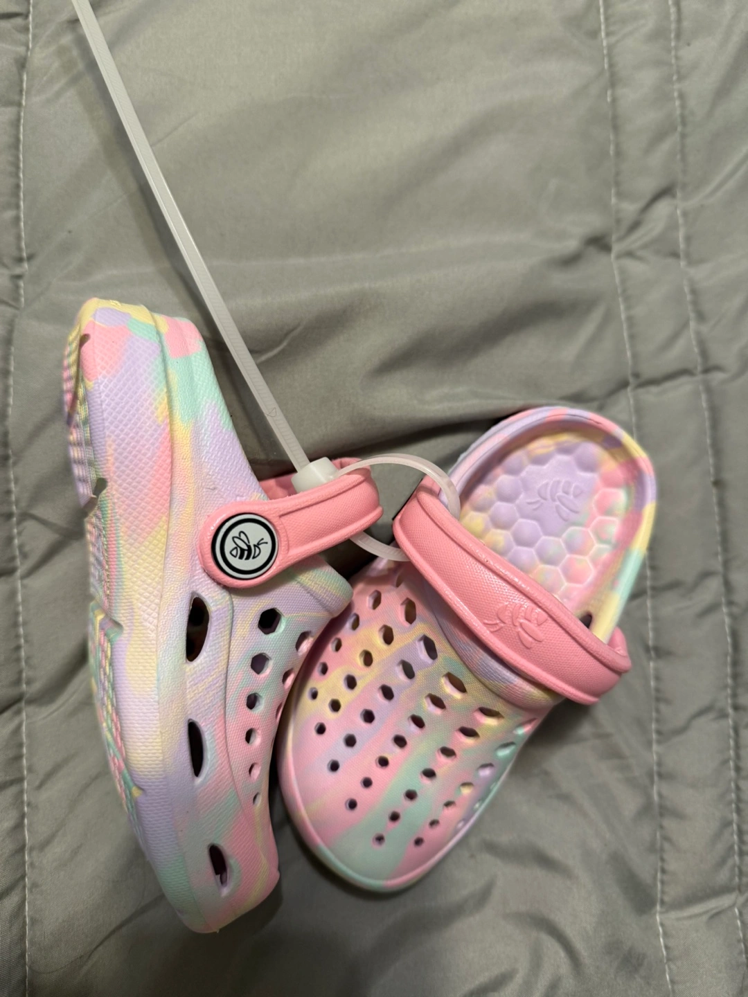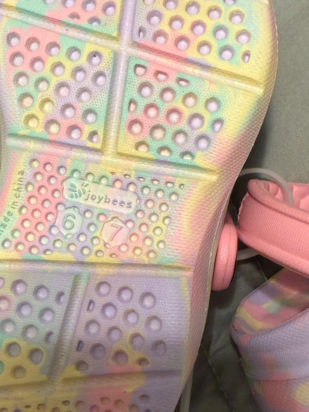 Cute Joybees clogs in a rainbow tie dye pattern! They're size 6/7 and in great condition