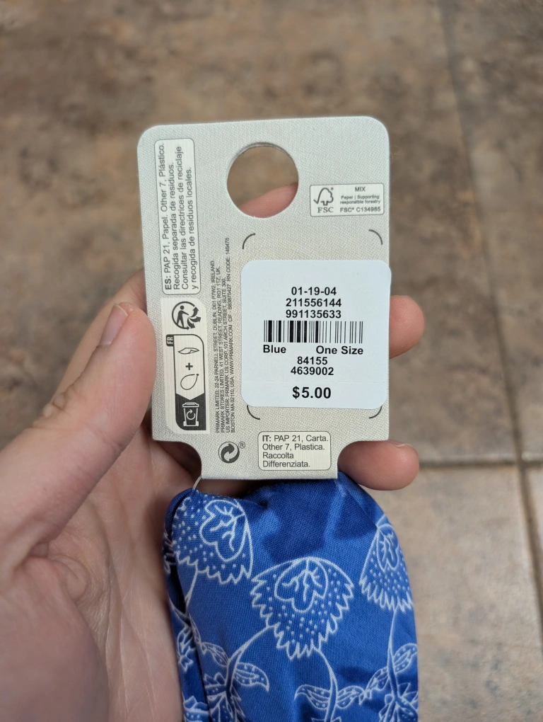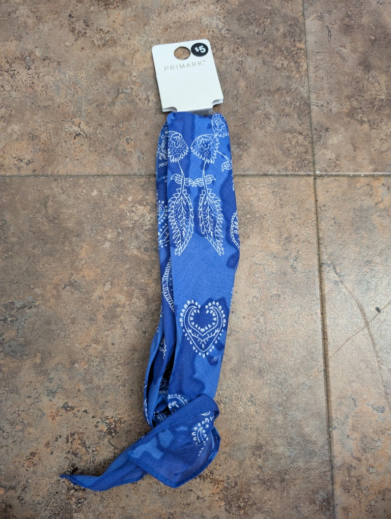 This is a brand new blue bandana from Primark! It features a pretty paisley pattern and is one size. The original price was $5 Euros.