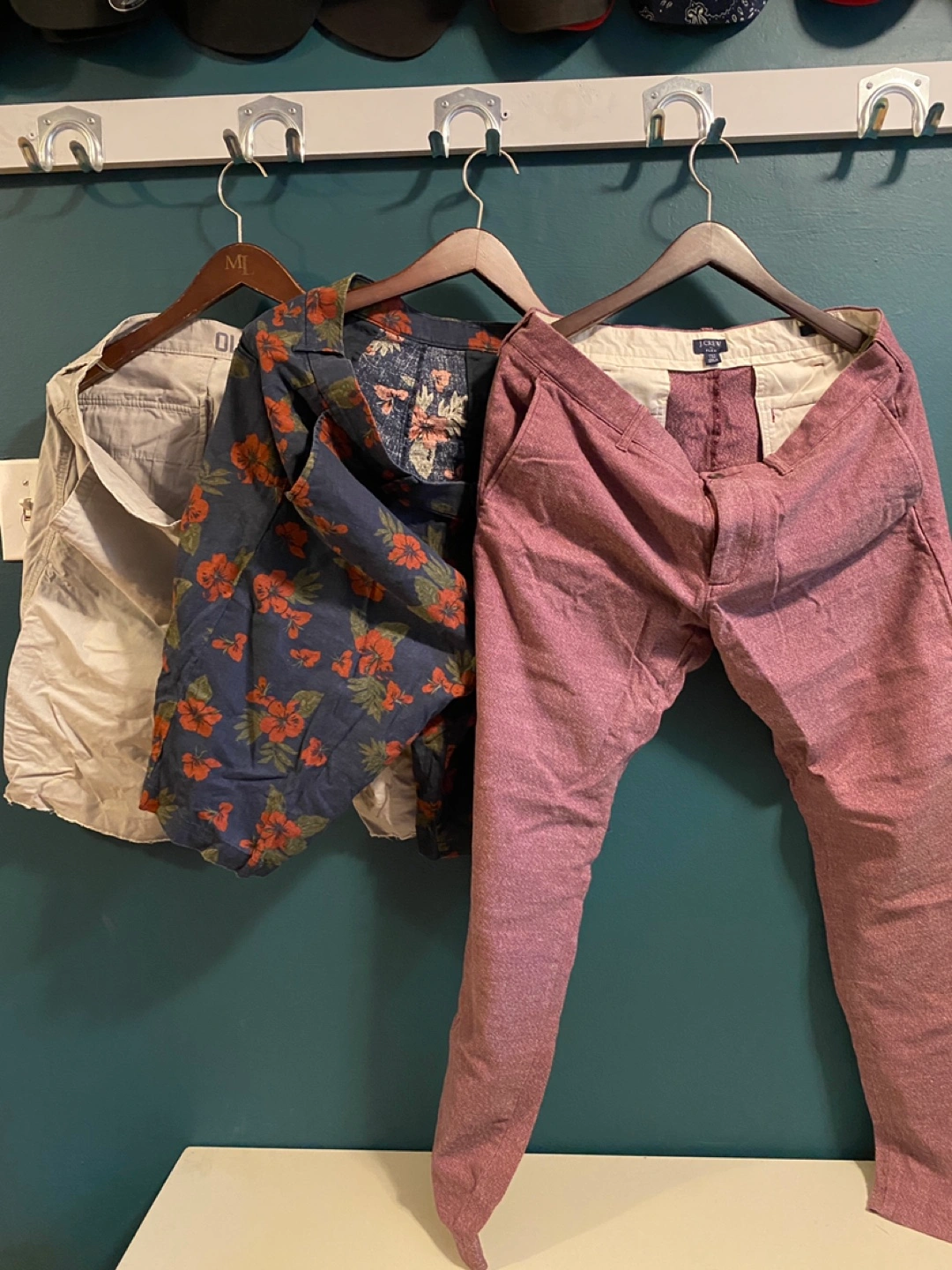 J.Crew Flex Burgundy Pants & two shorts old navy and uniqlo