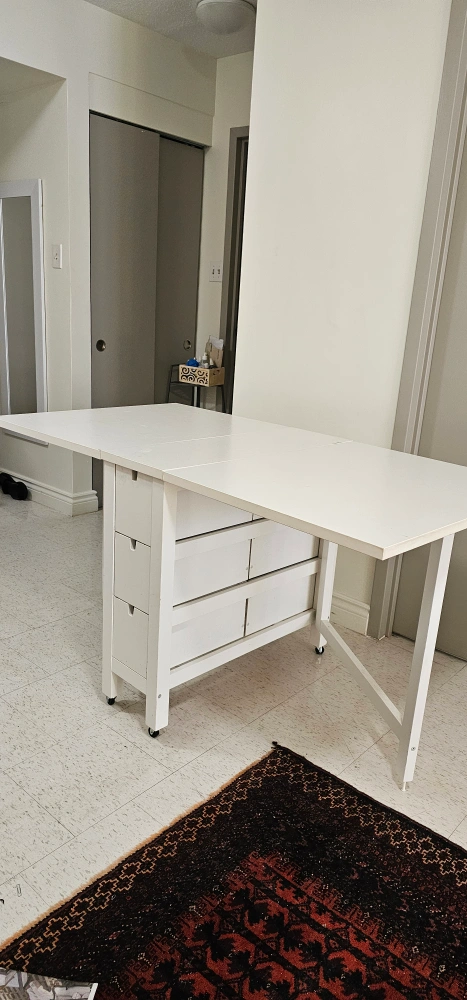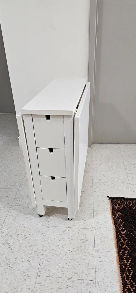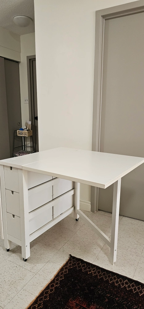 1000+Selling a versatile IKEA Norden extendable table in white! It features convenient drawers for storage and its extendable design makes it perfect for small spaces or accommodating guests. The table is in good condition and ready for a new home. Great for crafting, dining, or as a workspace!