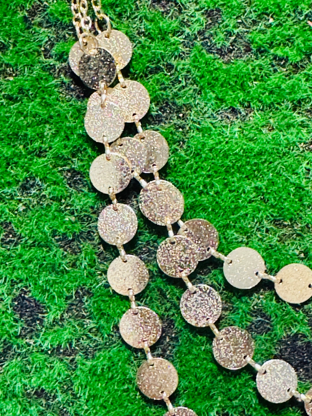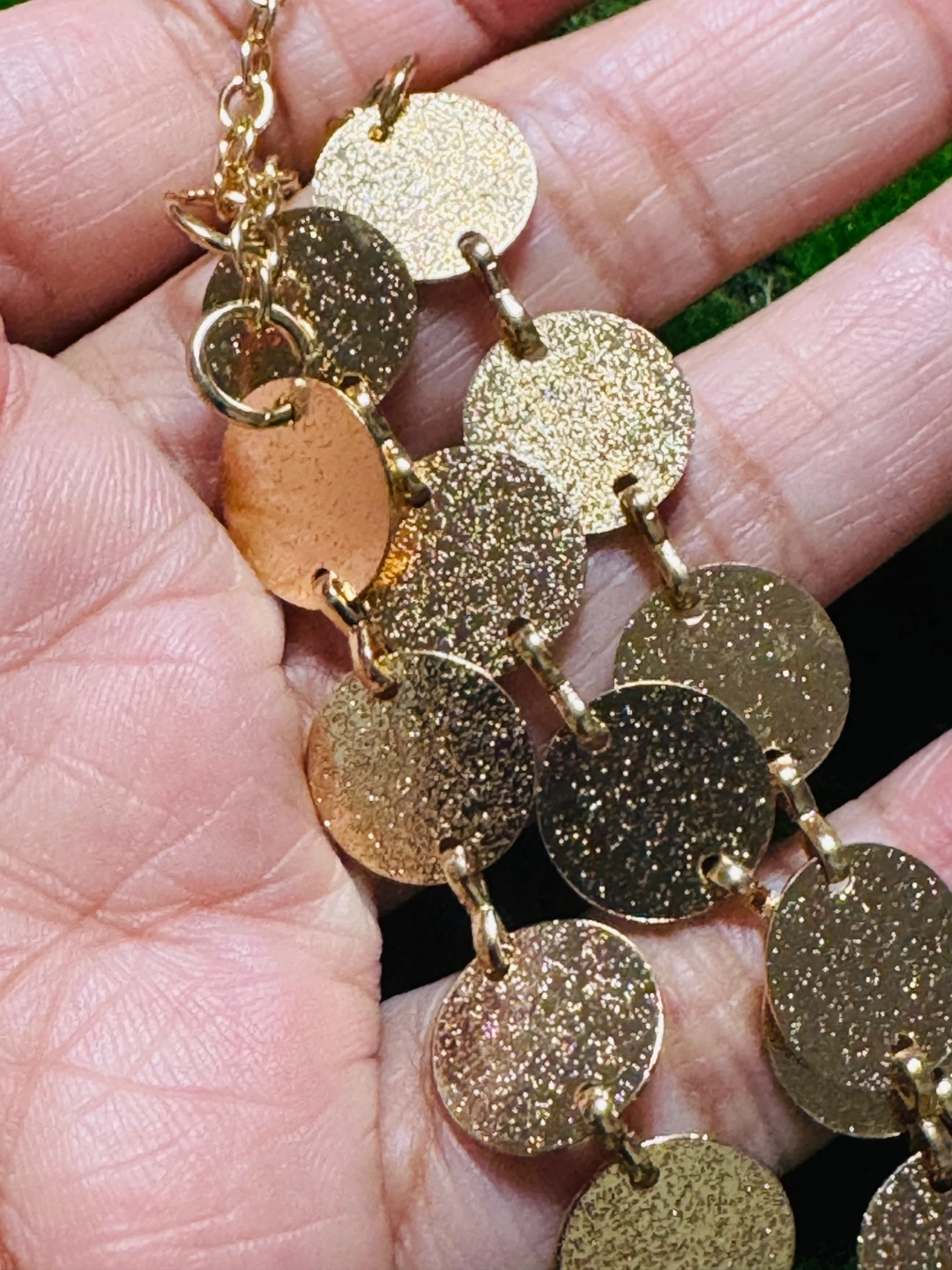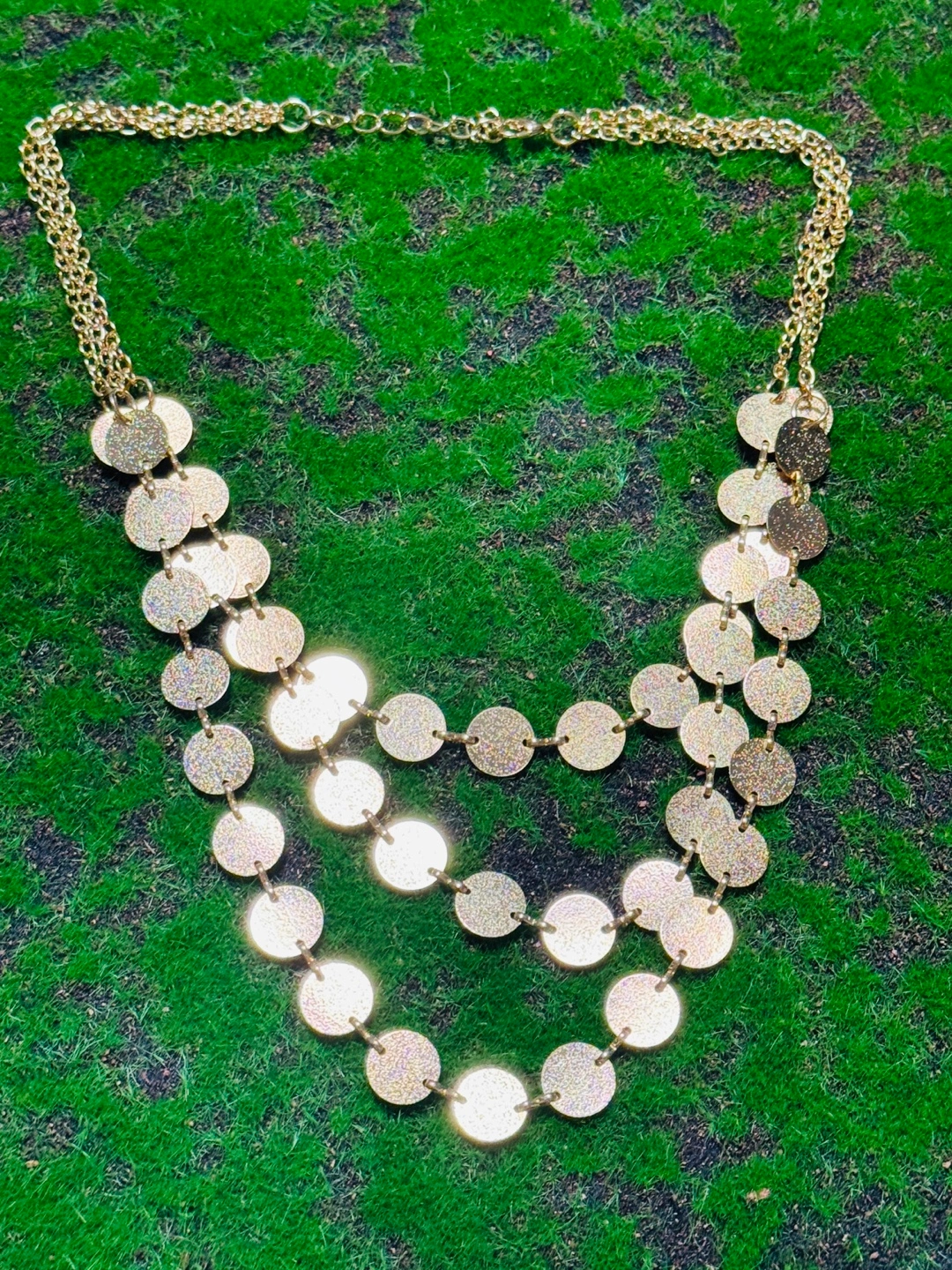 Selling a gold-tone layered necklace with small circle pendants. It's in great condition and ready to add some sparkle to your outfit!