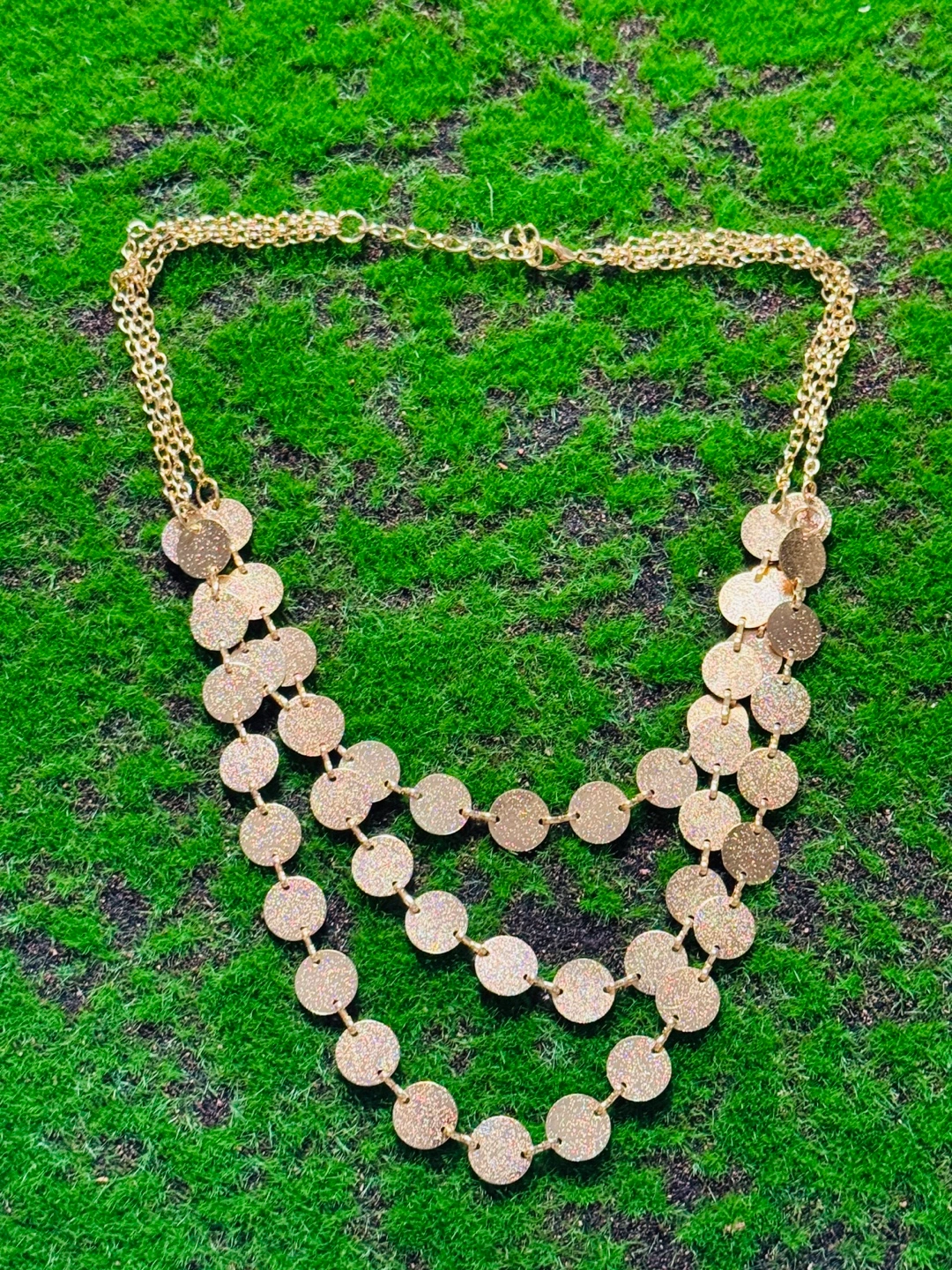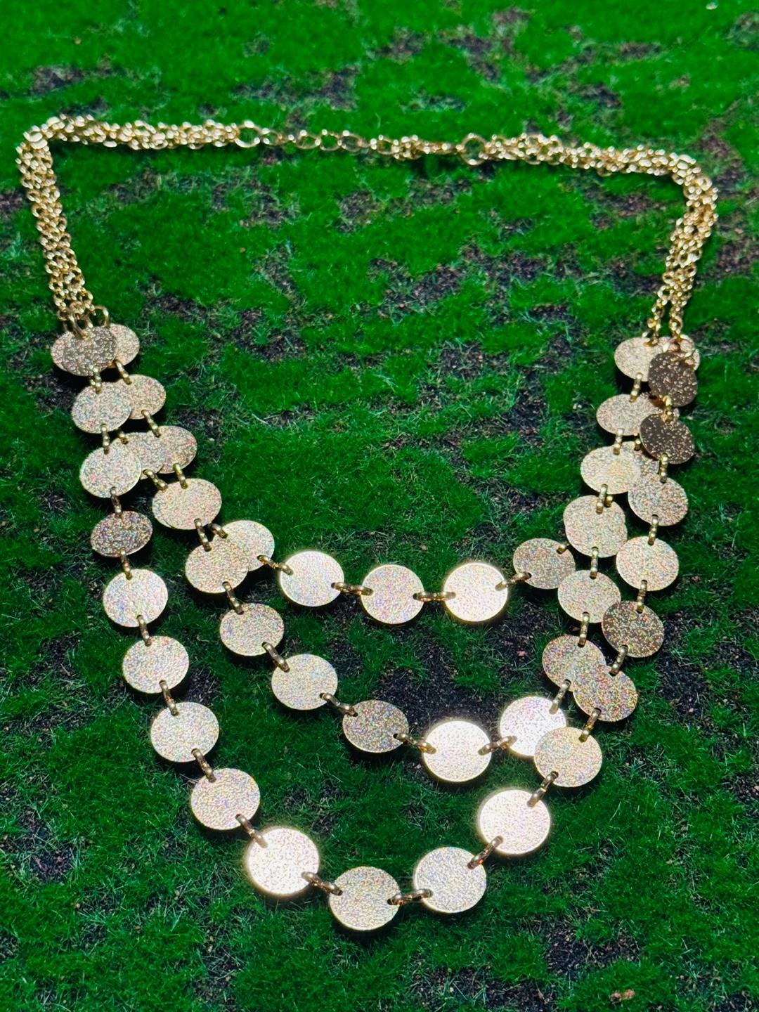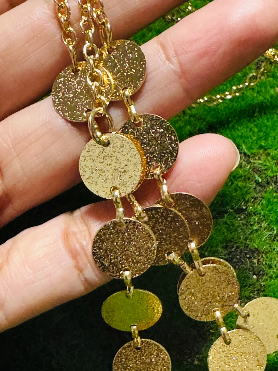 Selling a gold-tone layered necklace with small circle pendants. It's in great condition and ready to add some sparkle to your outfit!