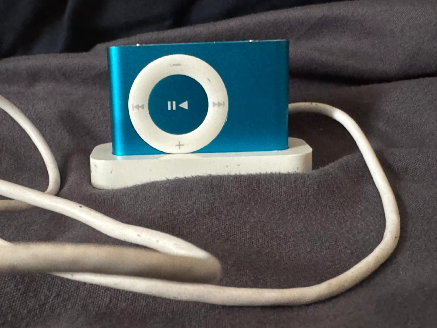 Selling a blue Apple iPod Shuffle 2nd generation. It comes with its dock and charger so you can easily sync and charge it. It's in good condition and ready for a new owner!