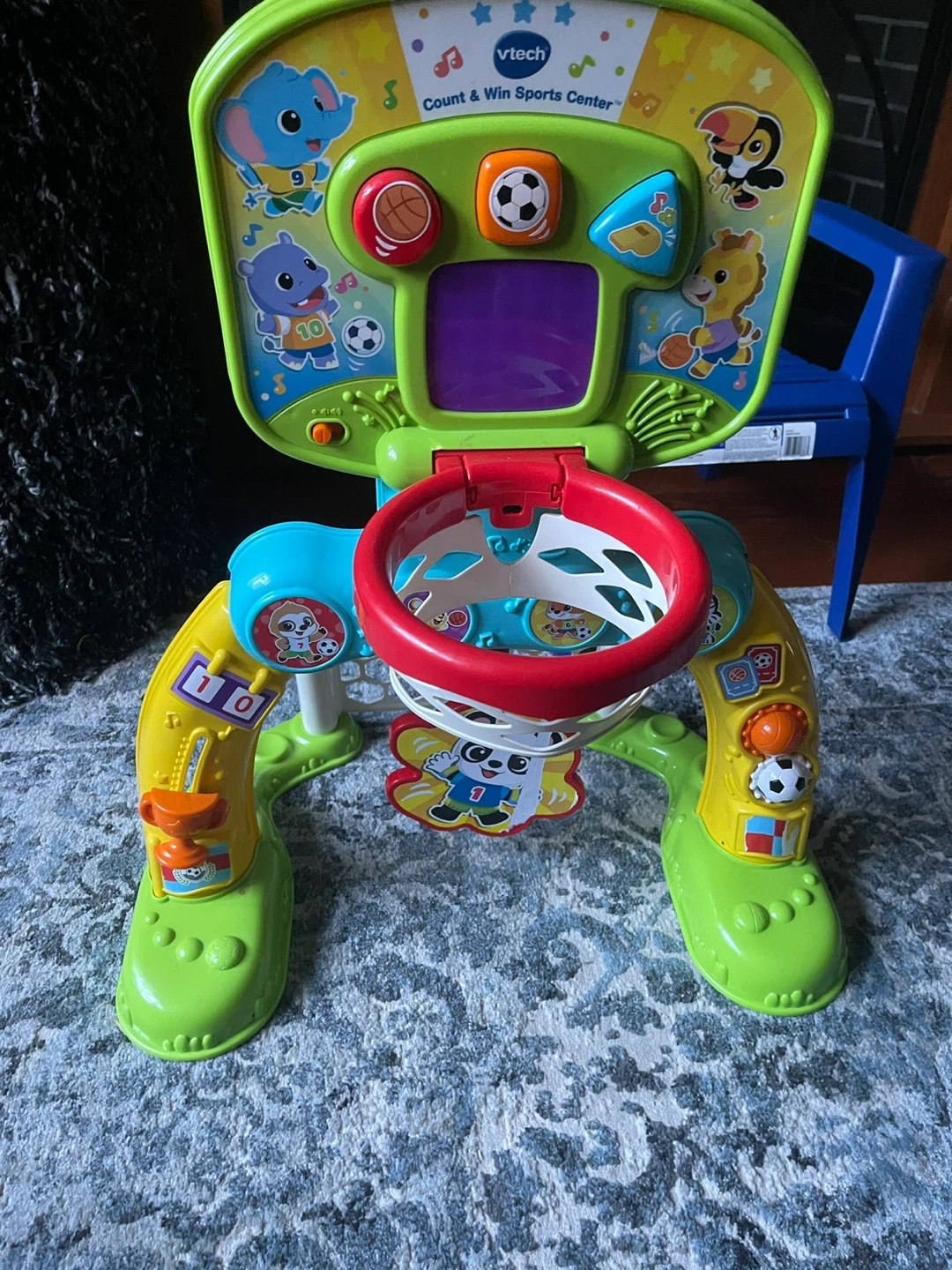 This is a VTech Count & Win Sports Center. It's in great condition and ready for a new home! It's perfect for toddlers to learn numbers and sports skills while having fun.