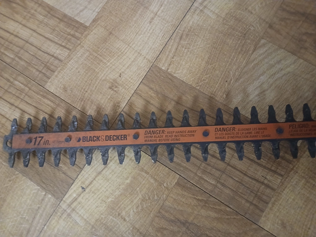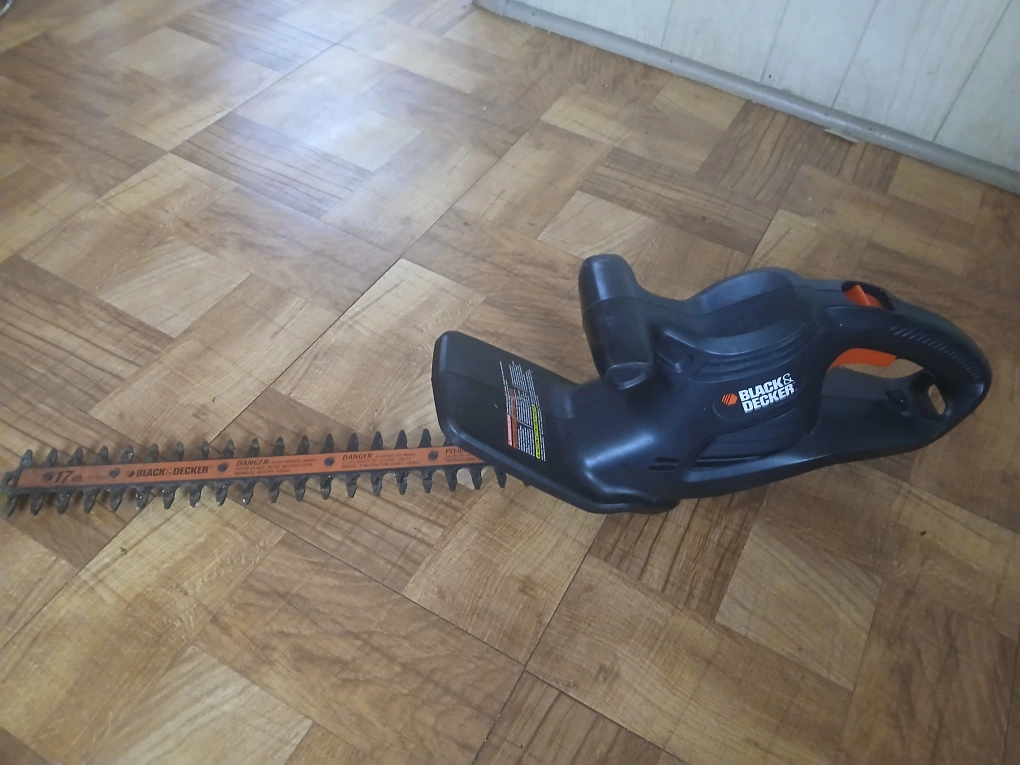 130Selling a Black & Decker electric hedge trimmer. It's in good condition and ready to help you keep your hedges looking sharp! The blade is 17 inches long....NO CORD!!