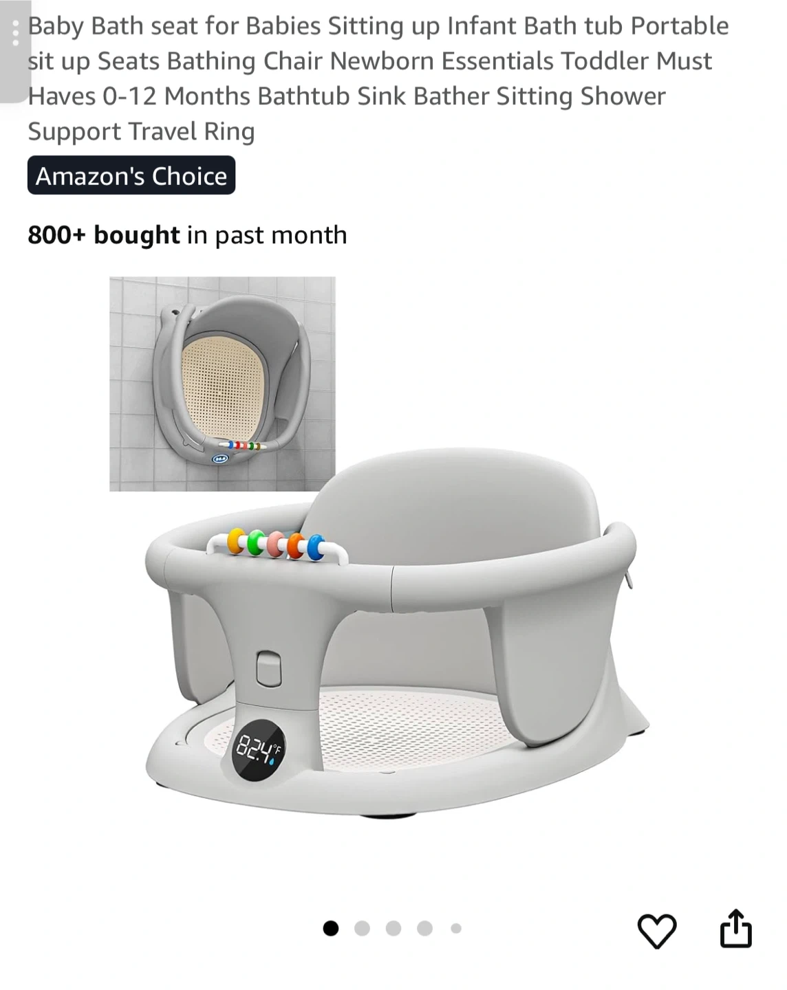 Baby Bath seat for Babies Sitting up Infant Bath tub Portable sit up Seats Bathing Chair Newborn Essentials Toddler Must Haves 0-12 Months Bathtub Sink Bather Sitting Shower Support Travel Ring(brand new in box)