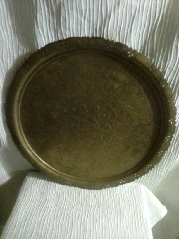 335Selling an antique decorative metal tray. It has a unique design and would make a great addition to any home decor. Feel free to ask any questions!