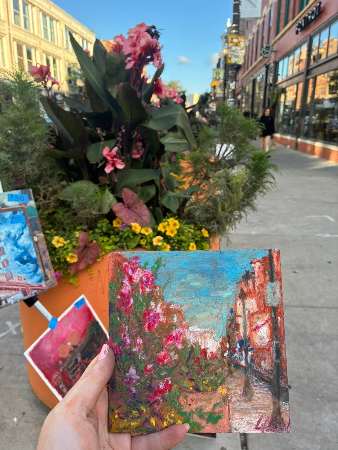 6x6” oil paint on panel Plain air scenic view of the 6 corners in Wicker Park. Painted on 8.28.2025