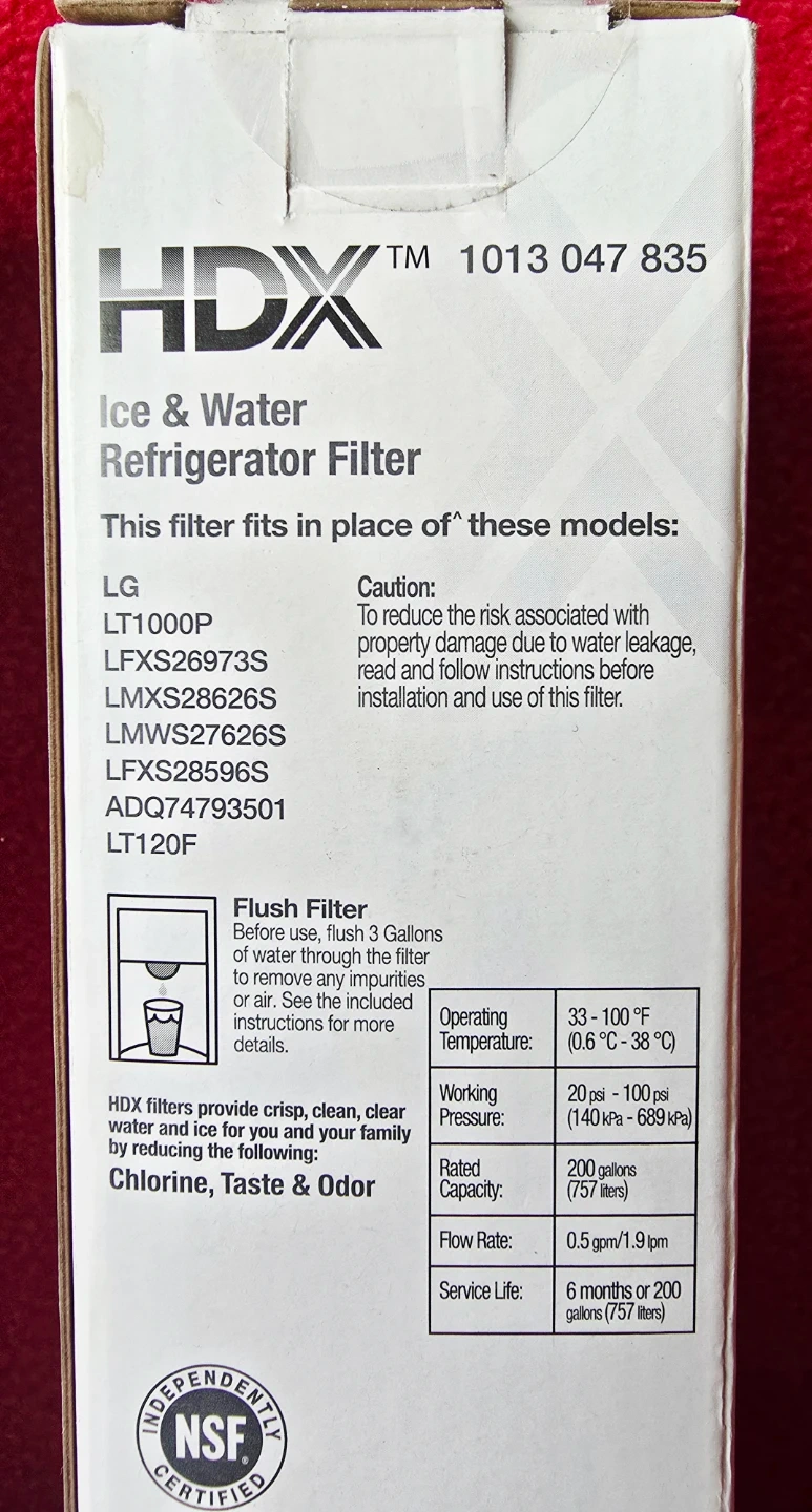 This HDX refrigerator filter provides crisp, clean water and ice for you and your family.