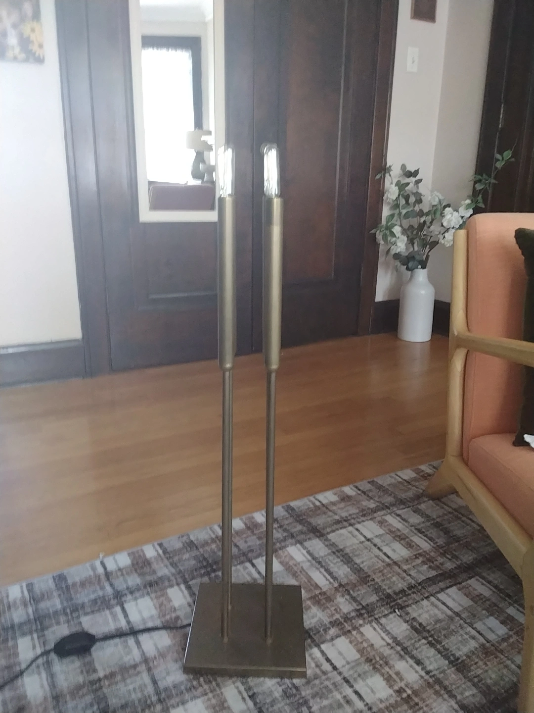 Add a touch of modern elegance to your home with this gold table lamp! It features a sleek design that complements any decor. The lamp is in great condition and ready to brighten up your space made of metal/ capper.